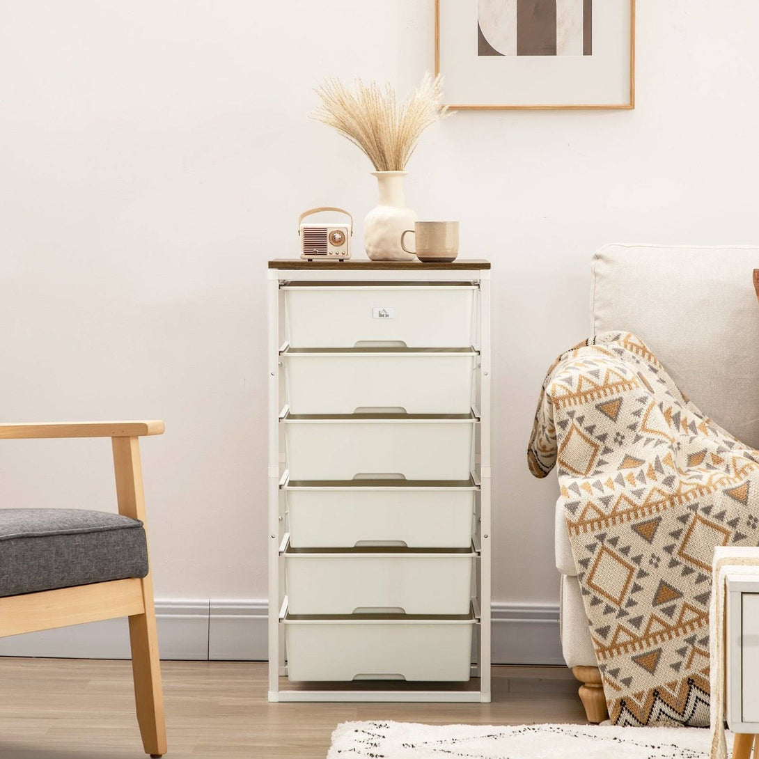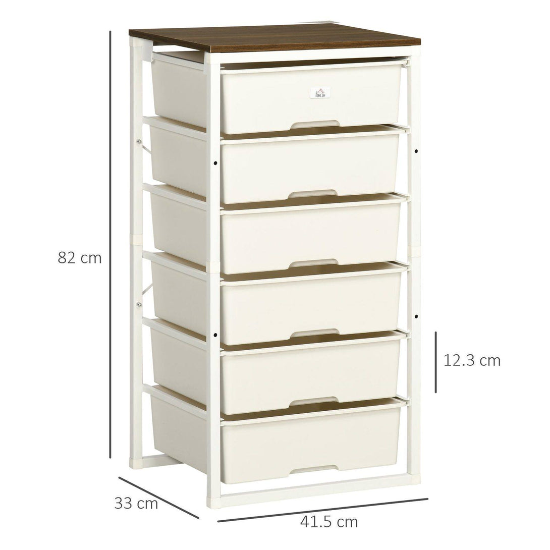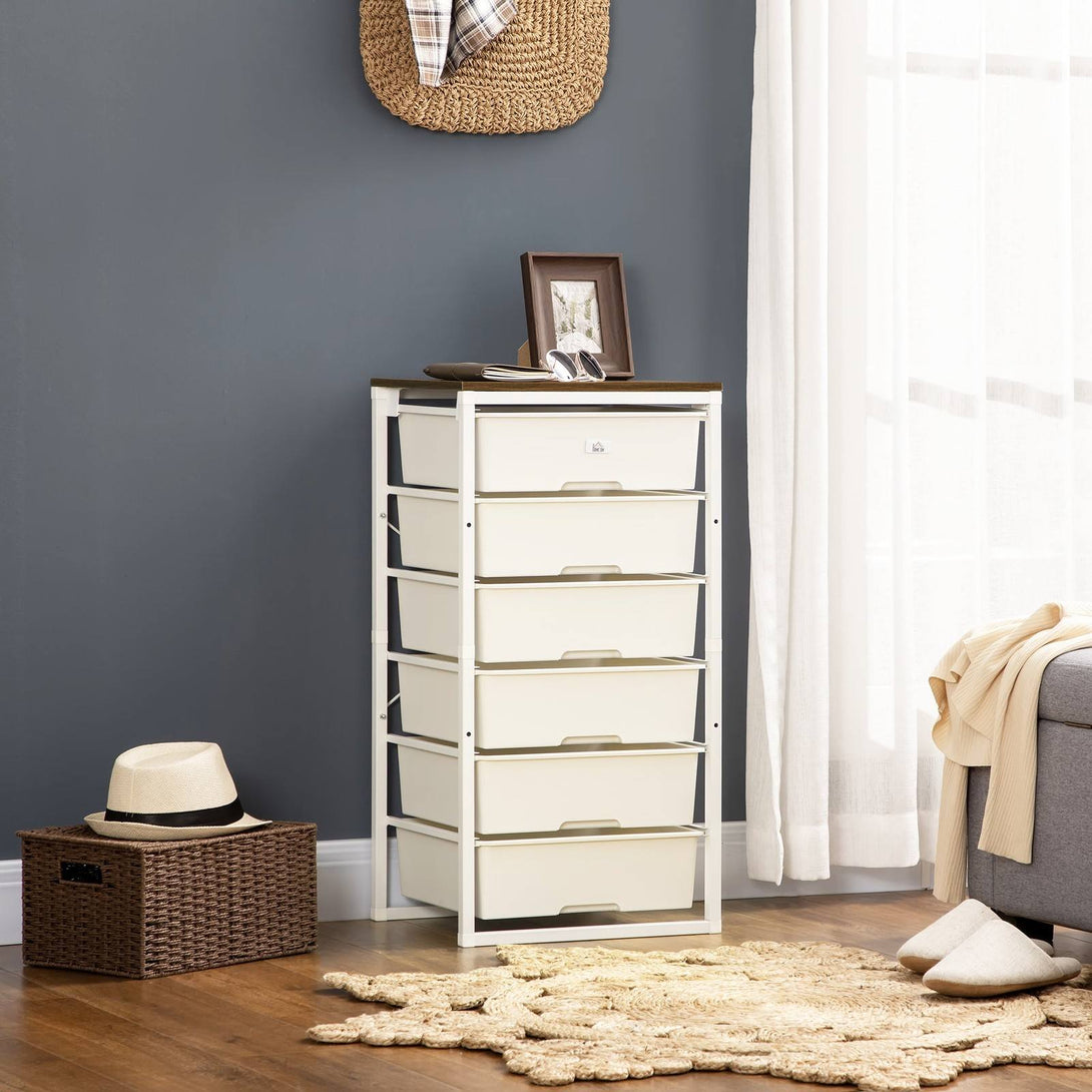 Storage drawers, from HOMCOM, made to keep whatever space you want tidy nice and organised. A metal frame for strength, with touch plastic drawers - sturdy formations and easy to keep clean. Six drawers offer plenty of space, plus they're easy to open and close. Complete with a top panel for extra holding - and display - room.