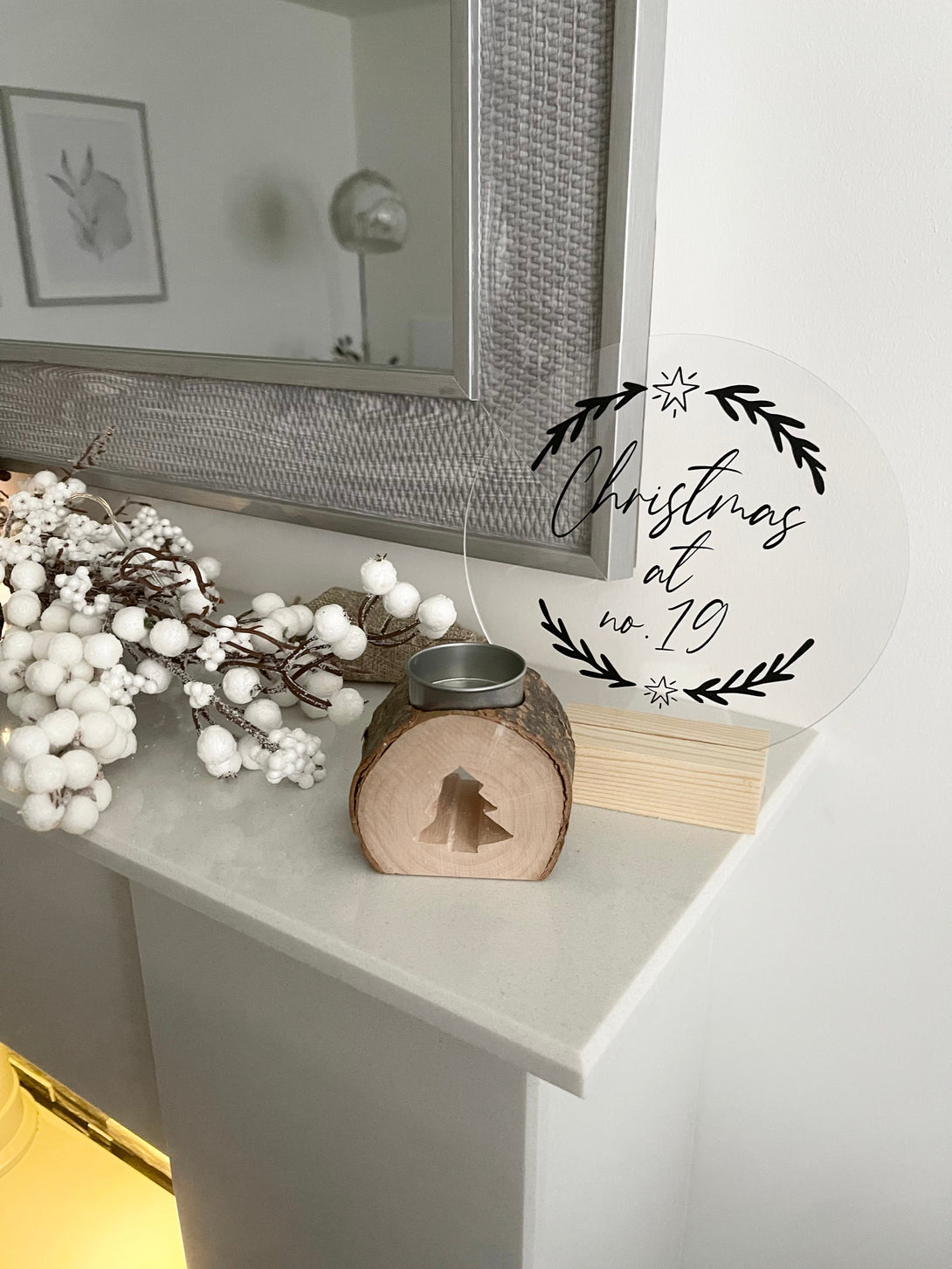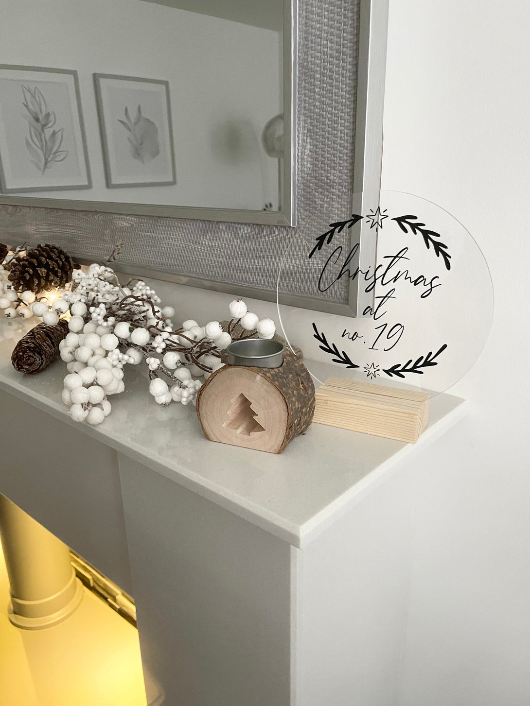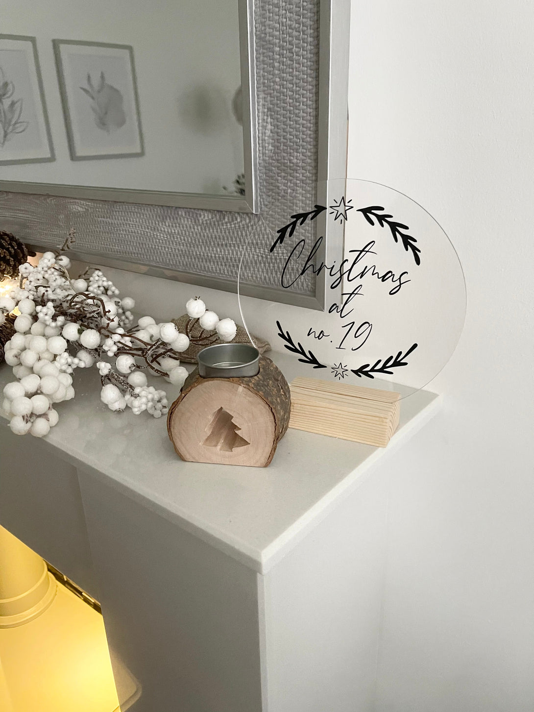 PREMIUM ACRYLIC WITH STURDY WOODEN BASECrafted from clear, high-quality acrylic, this sign is securely set into a solid wooden block base for a freestanding design. The plaque is firmly glued in place, ensuring stability and durability throughout the holiday season.