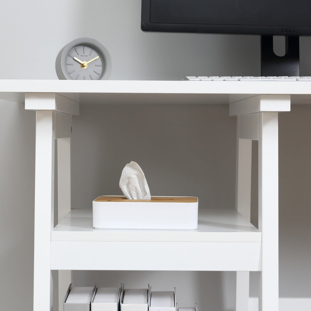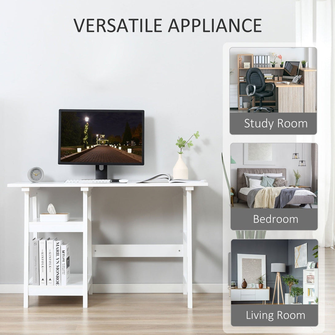 Ensure you have a clean and organised slate to work from, with full help from this computer table from HOMCOM. Design blends together a compact study desk with two side shelves - room for working, with the two shelves offering convenient storage of your papers and folders etc. The frame, made from a particle board and MDF blend, is durable and keeps the writing desk steady, making your work times as peaceful and productive as possible.