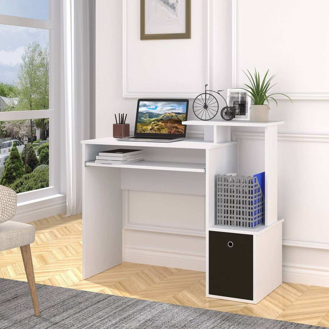 Computer Desk with Sliding Keyboard Tray Storage Drawer Shelf Home Office Workstation White