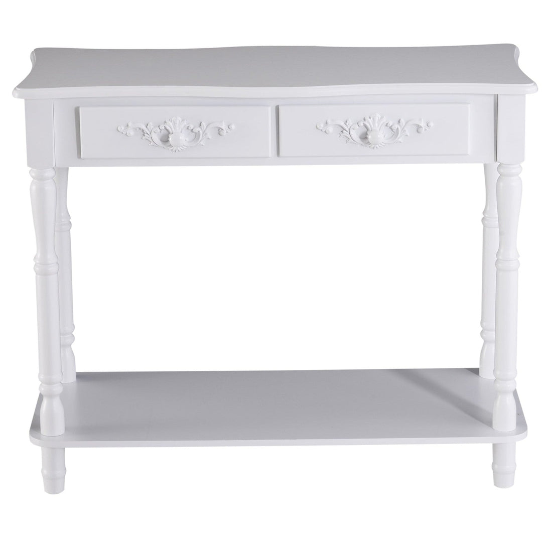 Console Table Modern Sofa Side Desk with Storage Shelves Drawers for Living Room Entryway Bedroom White