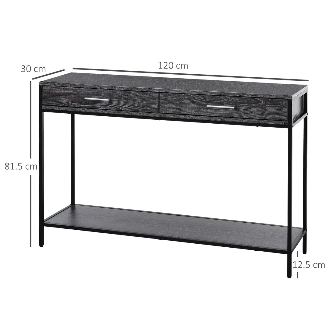 Blending style and storage function together, this industrial console table from HOMCOM is a distinctive piece of furniture youll love having at home from the start. It features two slide-out drawers, a spacious top and bottom shelf, offering lots of storage and display space for you to keep your space tidy. Finished in a smooth grey wood tone design, it can be cleaned and kept beautiful with just the wipe of a cloth. Now you just have to decide where to put it.