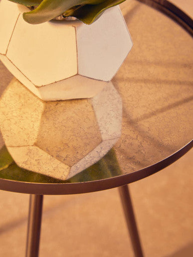 Corra Copper Finish Mirrored Glass Top Side Table