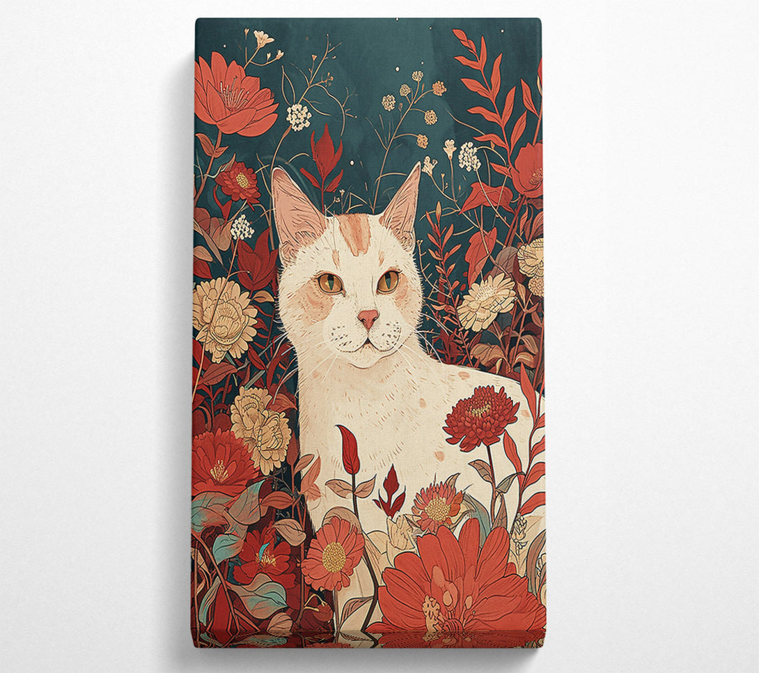 Crimson Cat Among Flowers Canvas Print