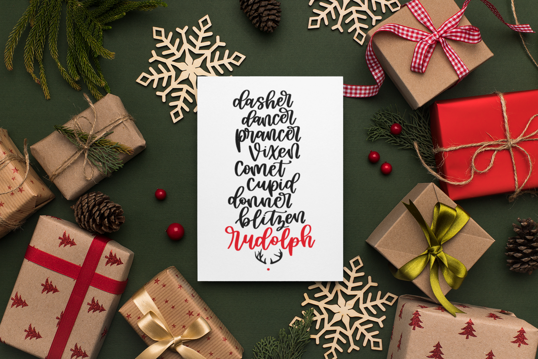 Custom Reeindeer List Christmas Seasonal Hammered Card & Envelope