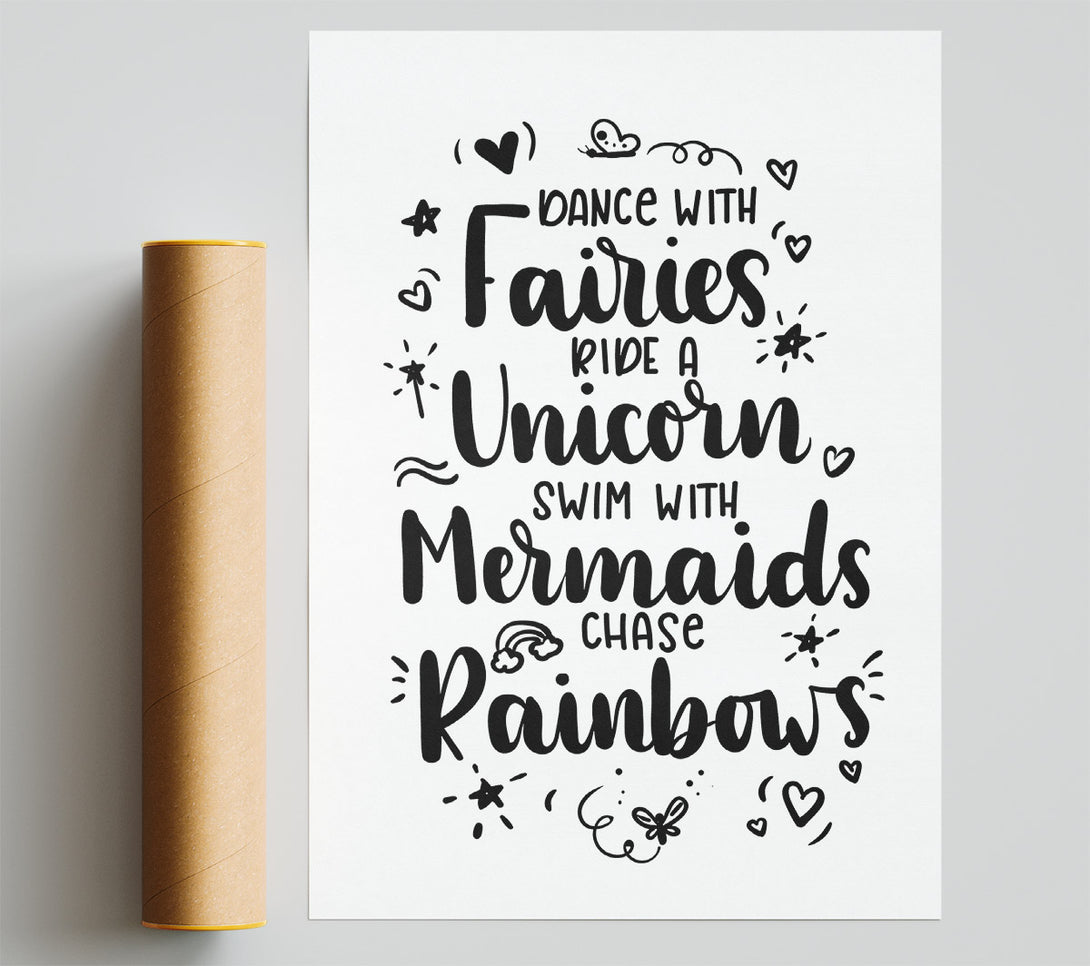 Our Dance With Fairies Ride A Unicorn Poster is printed 260 GSM premium lustre paper that offers vibrant colours and exceptional detail.