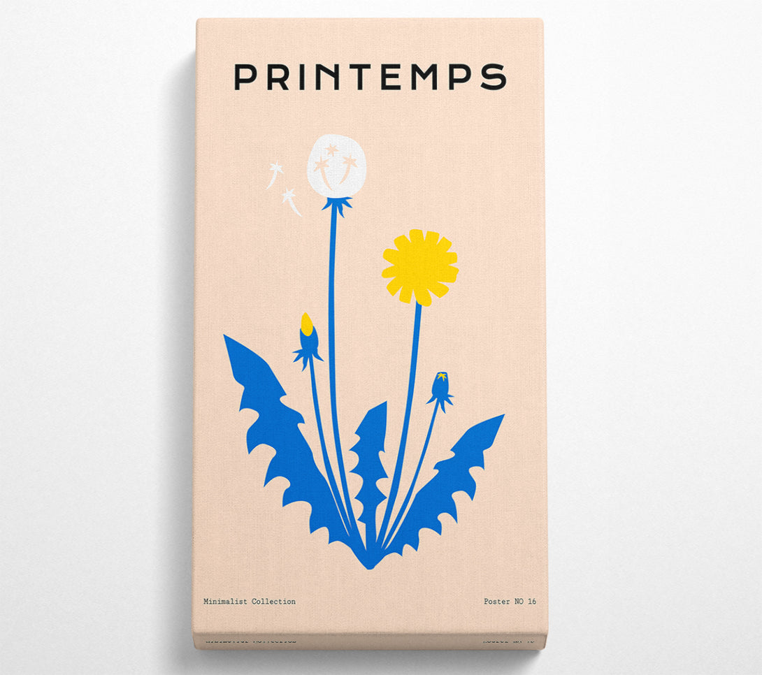 Breite Leinwand „Dandelion Spring“, gedruckt auf beschichteter Polyester-Leinwand. Auf einem 44 mm großen Kastenrahmen montiert, fertig zum Aufhängen.