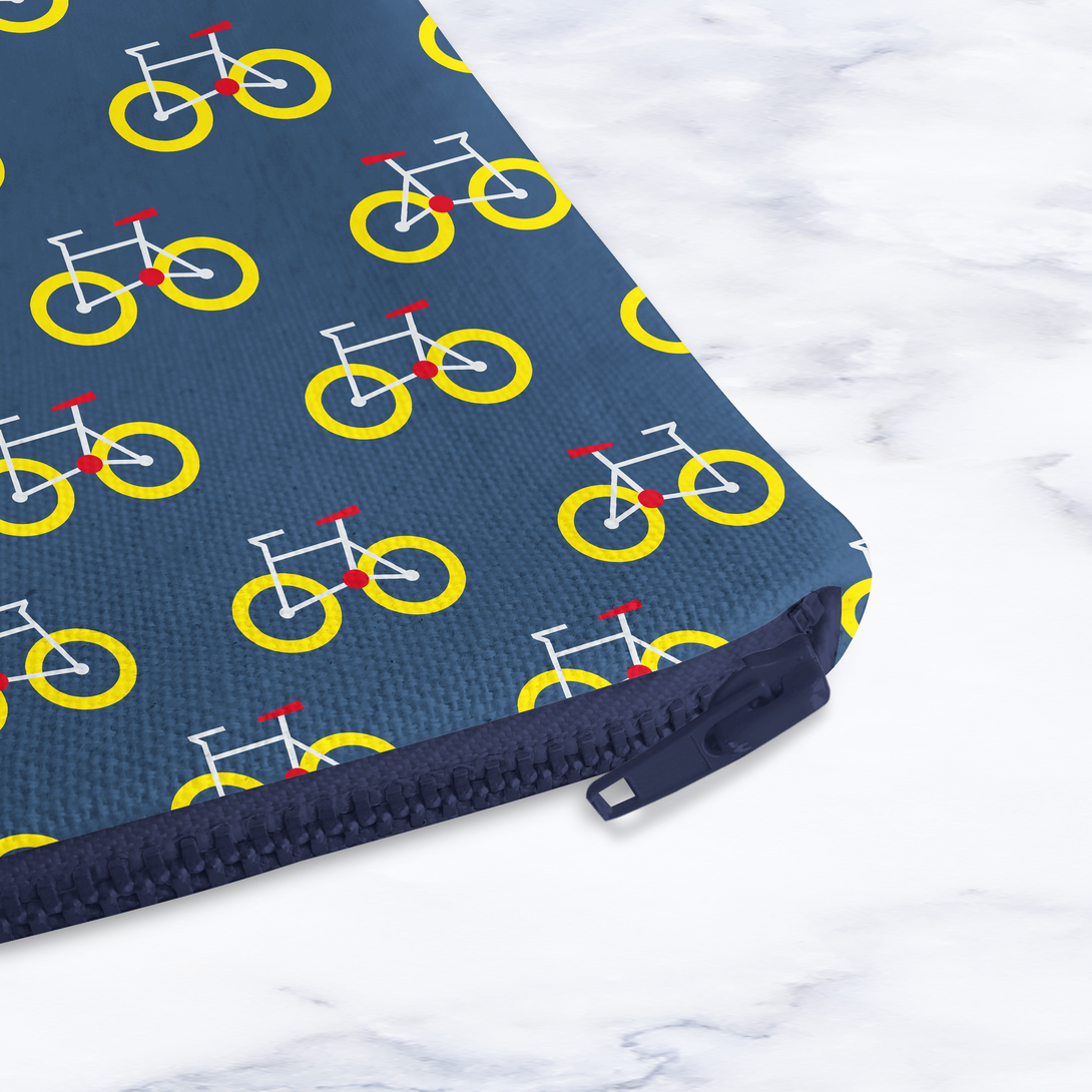 Dark Blue Bicycle Print Makeup Bag - Handmade Cosmetic Pouch with Water-Resistant Lining