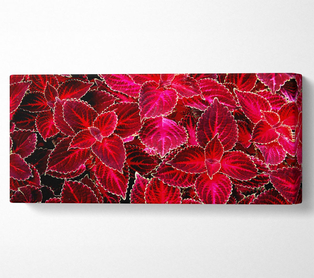 Leinwandbild „Tiefrote Herbstblätter“, gedruckt auf beschichteter Polyester-Leinwand. Auf einem 44 mm großen Kastenrahmen montiert, fertig zum Aufhängen.