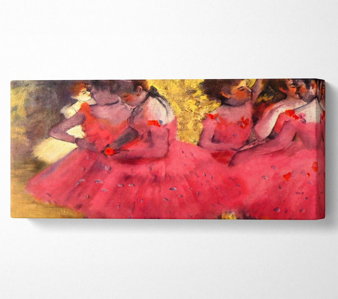 Degas-Tänzerinnen in Rosa zwischen den Szenen, Leinwand, gedruckt auf beschichteter Polyester-Leinwand. Auf einem 44 mm großen Kastenrahmen montiert, fertig zum Aufhängen.