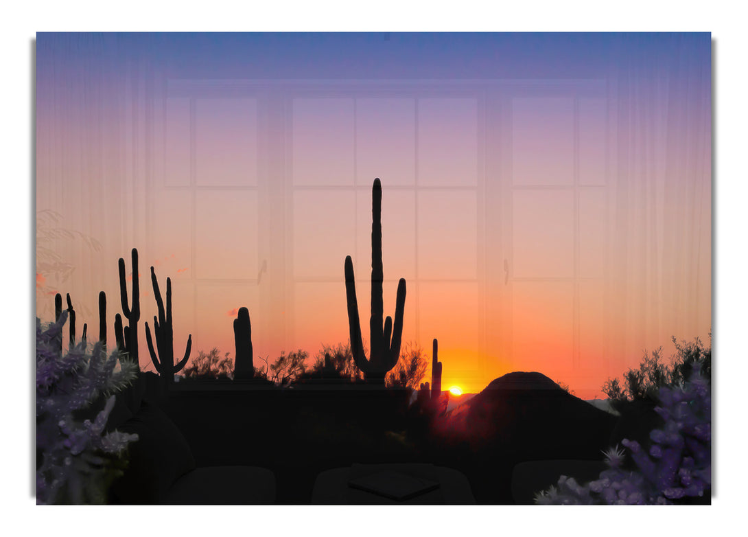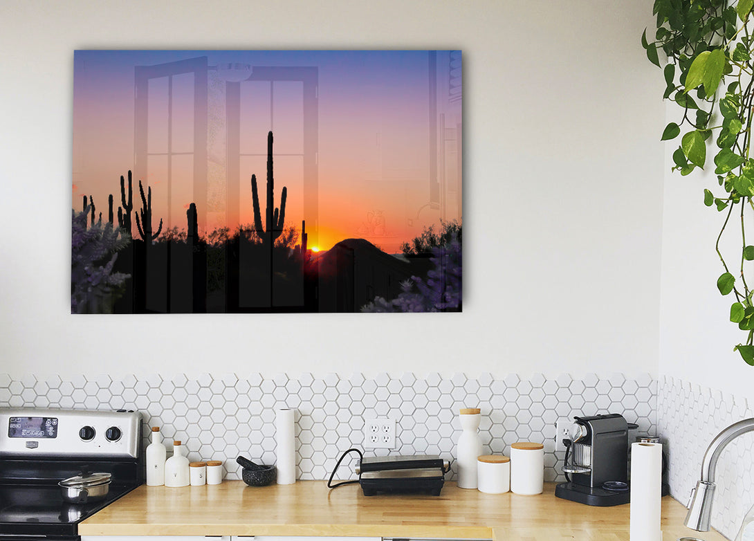 Acryldruck „Desert Sun Glow“, UV-gedruckt auf 5 mm dickes Acrylglas. Wird mit allem geliefert, was Sie zum Aufhängen an die Wand brauchen.