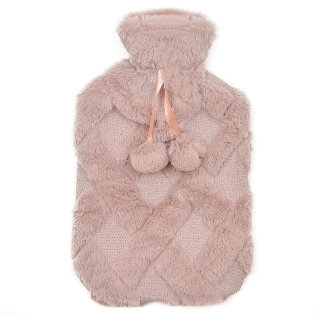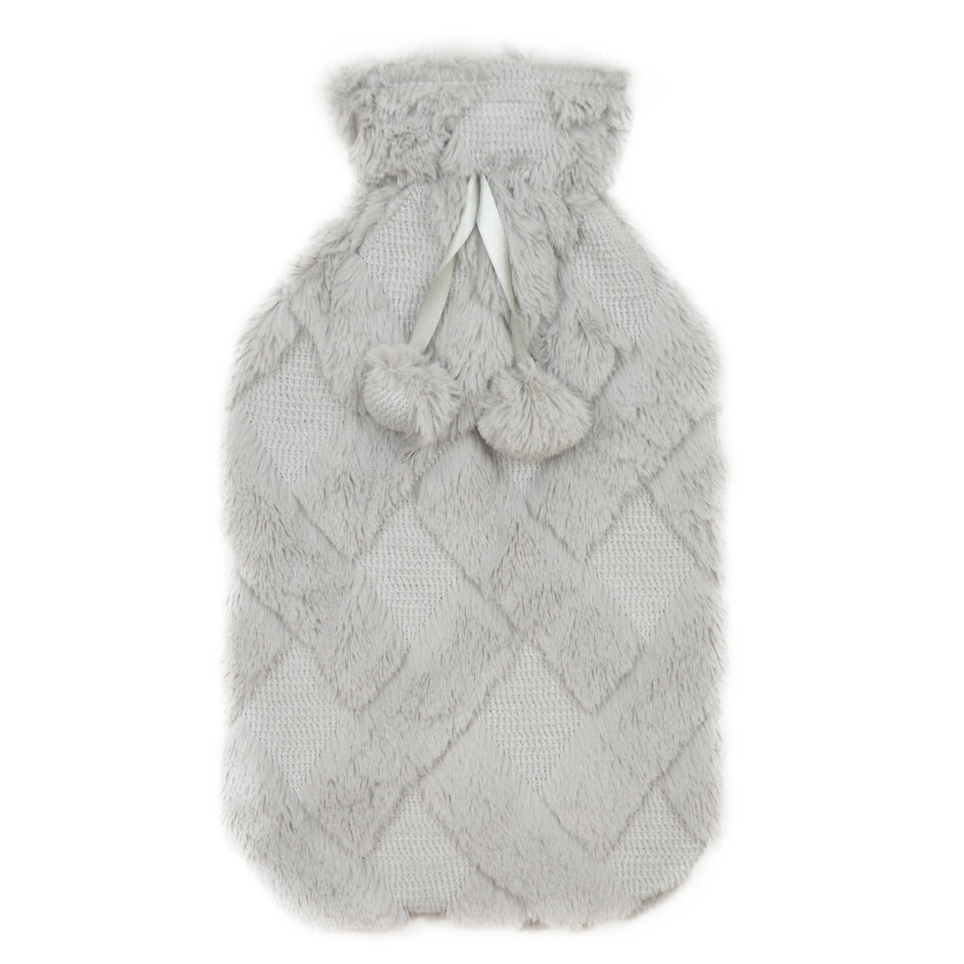 Diamond Fleece Hot Water Bottle With Pom Poms, 2L Capacity