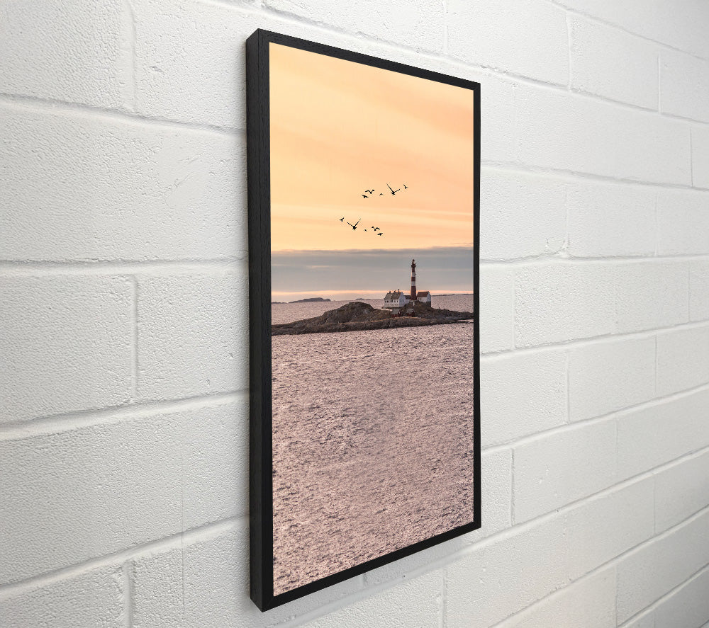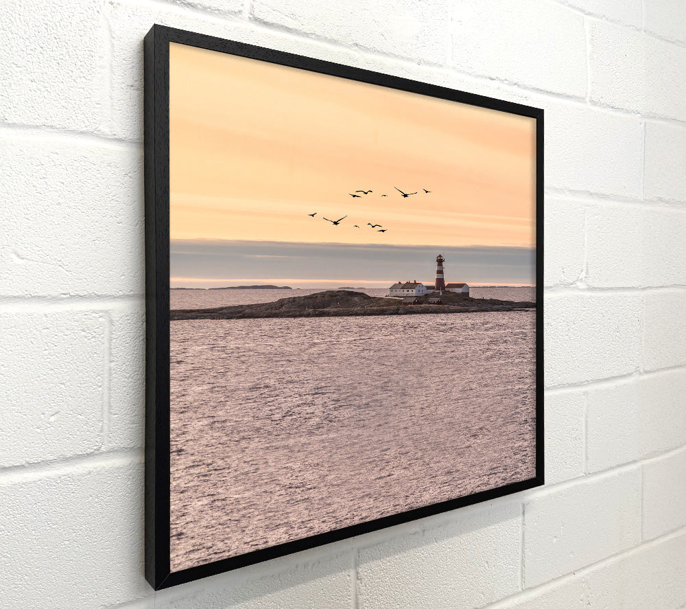 Distant Lighthouse With Birds Flying