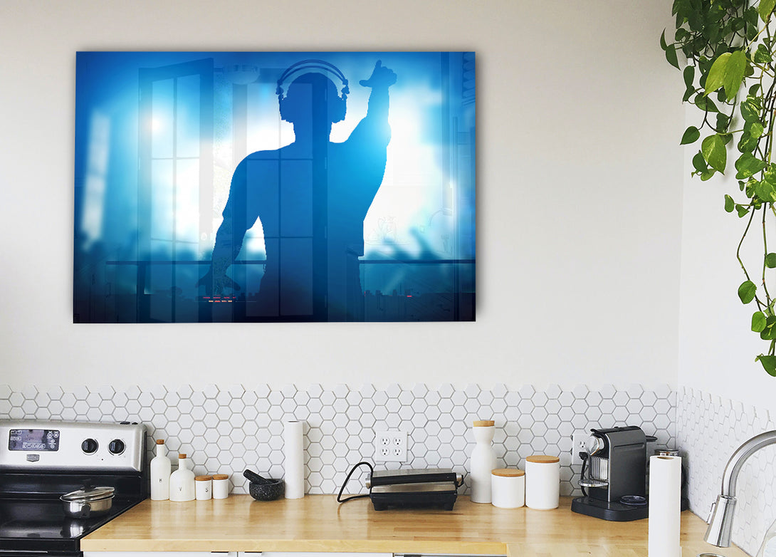 DJ Blues-Acryldruck, UV-gedruckt auf 5 mm dickes Acrylglas. Wird mit allem geliefert, was Sie zum Aufhängen an die Wand brauchen.