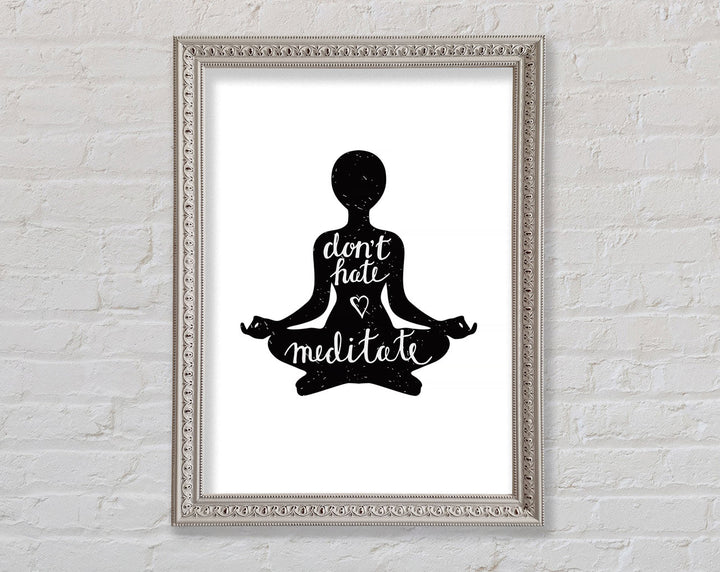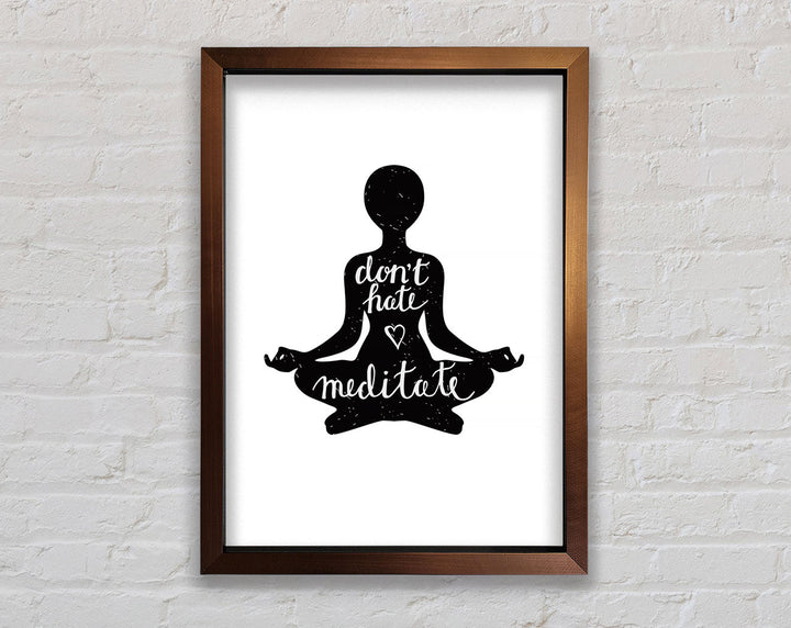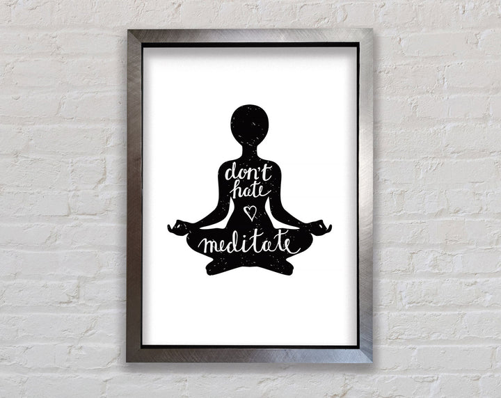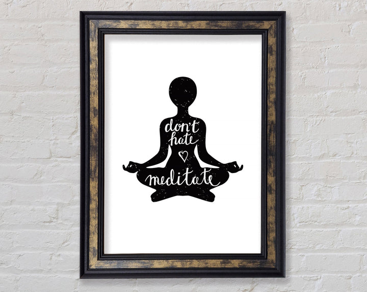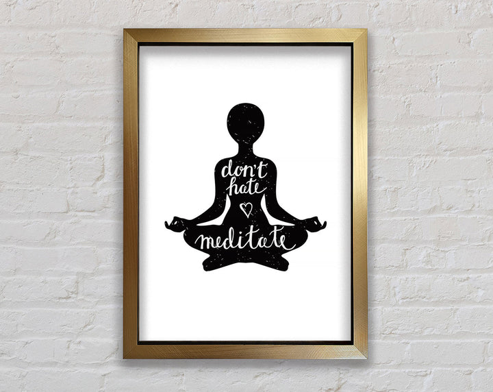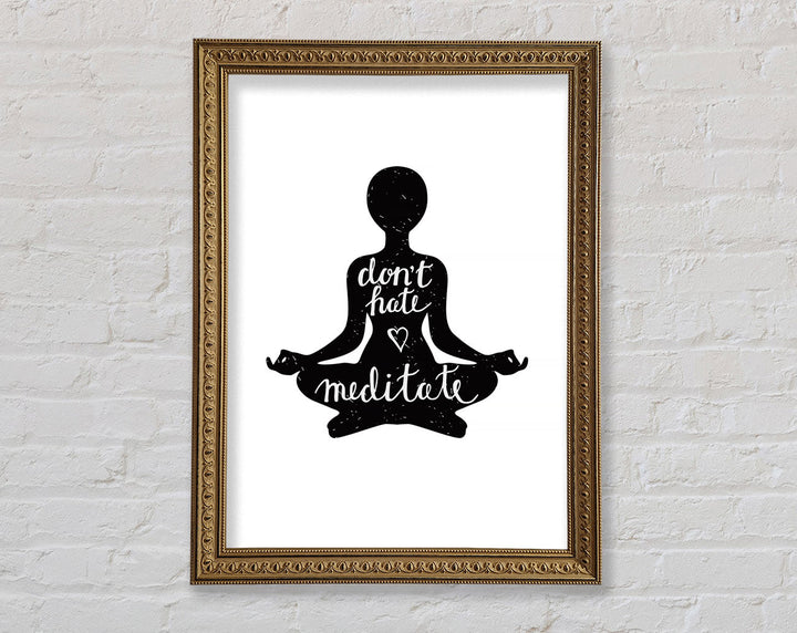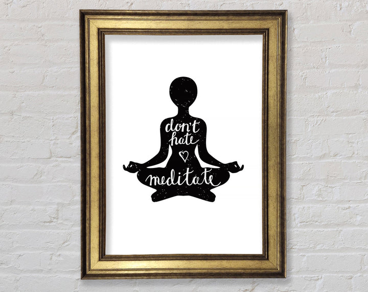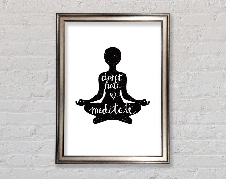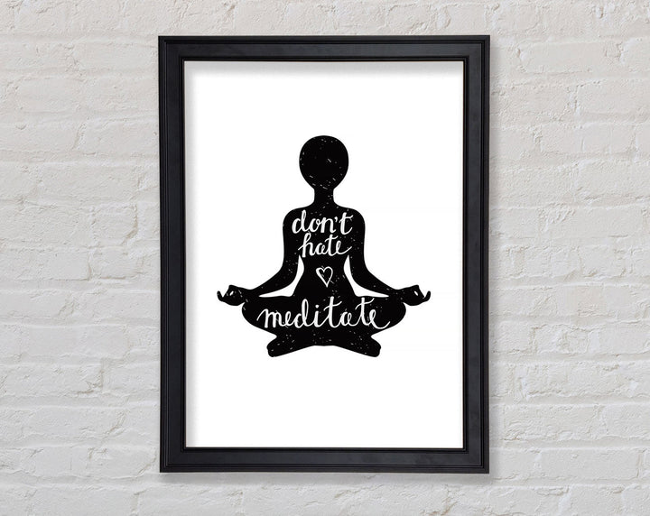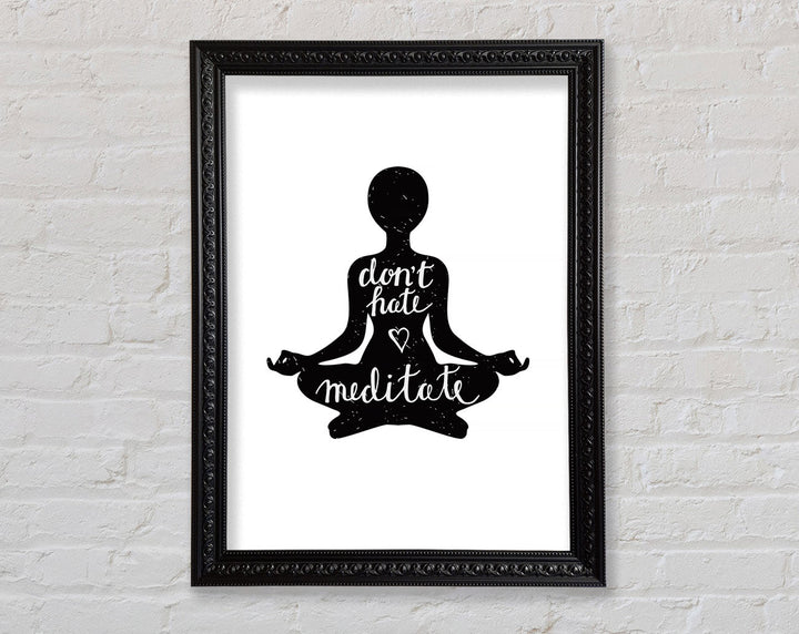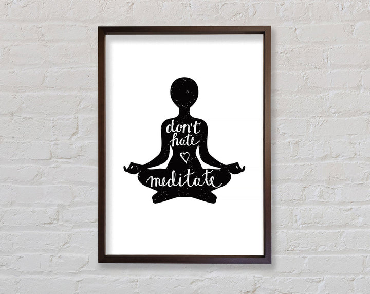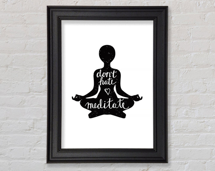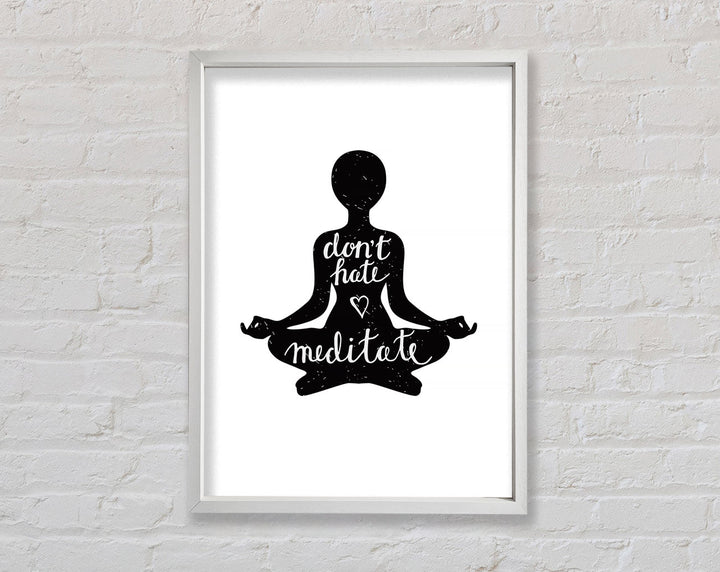 Gerahmter Druck „Don't Hate Meditate“, erhältlich in mehreren Rahmenfarben. Fertig zum Aufhängen aus der Schachtel und handgefertigt im Vereinigten Königreich.