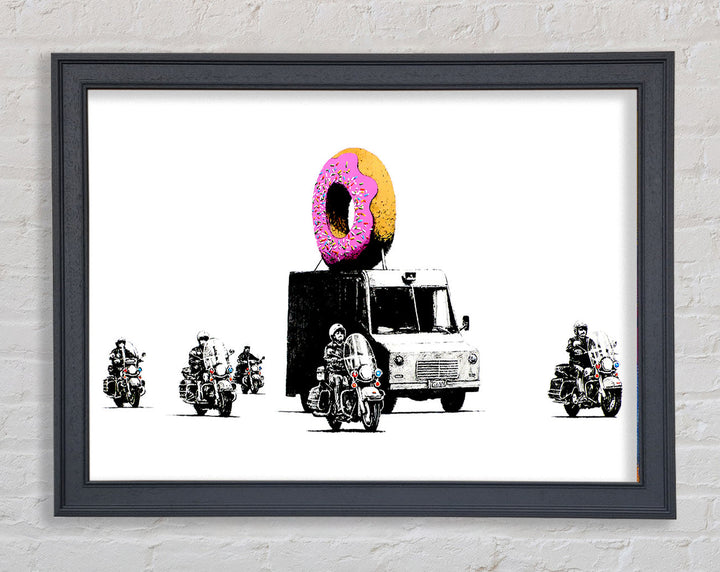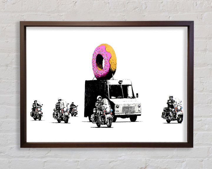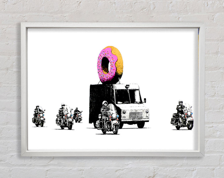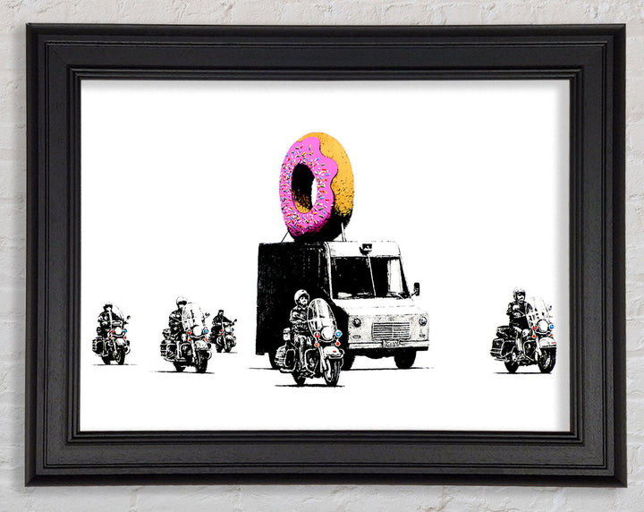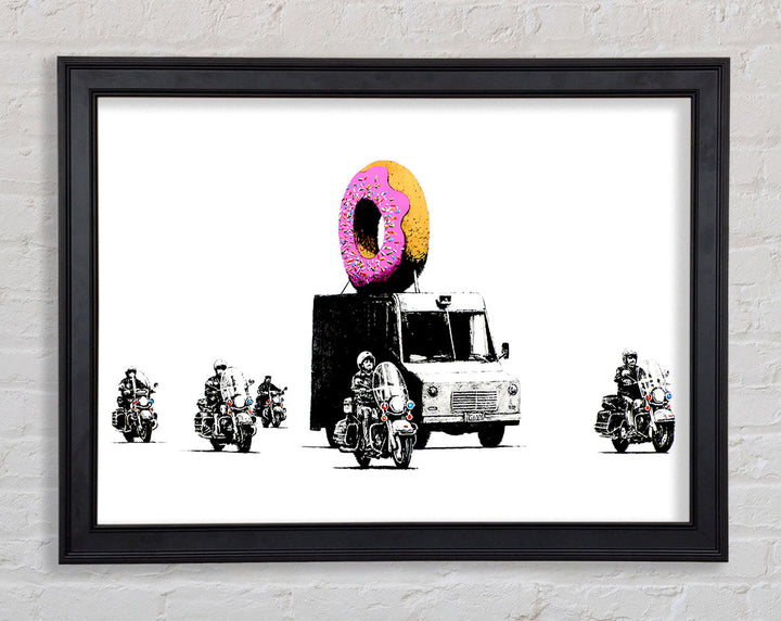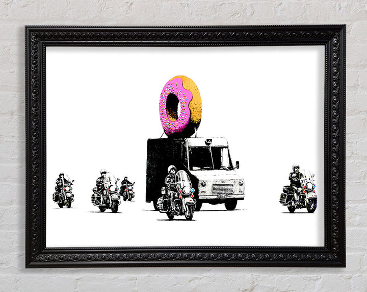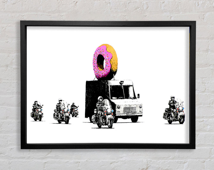Gerahmter Druck „Donut Security“, erhältlich in mehreren Rahmenfarben. Fertig zum Aufhängen aus der Schachtel und handgefertigt im Vereinigten Königreich.