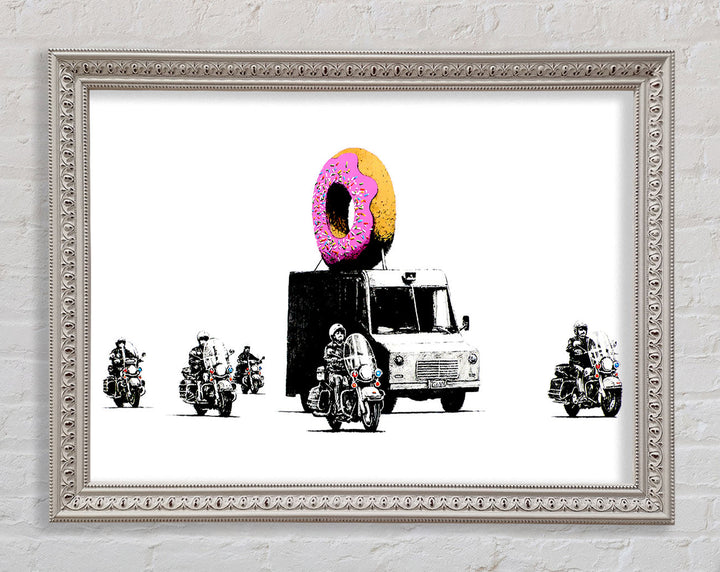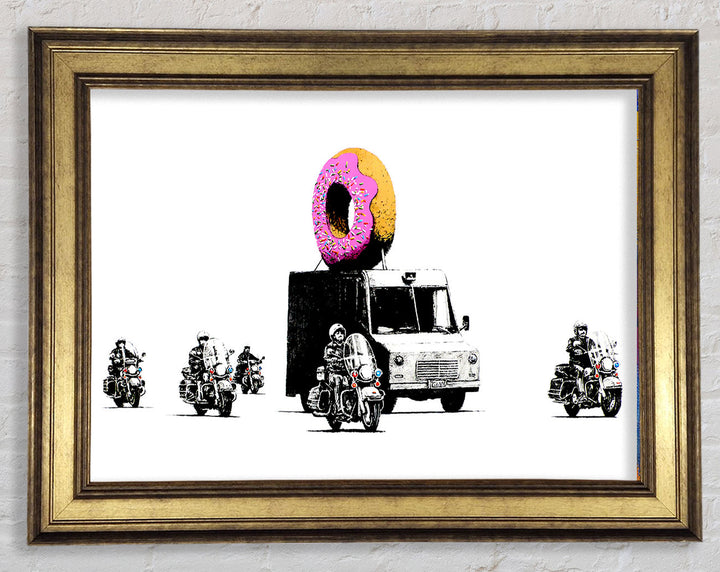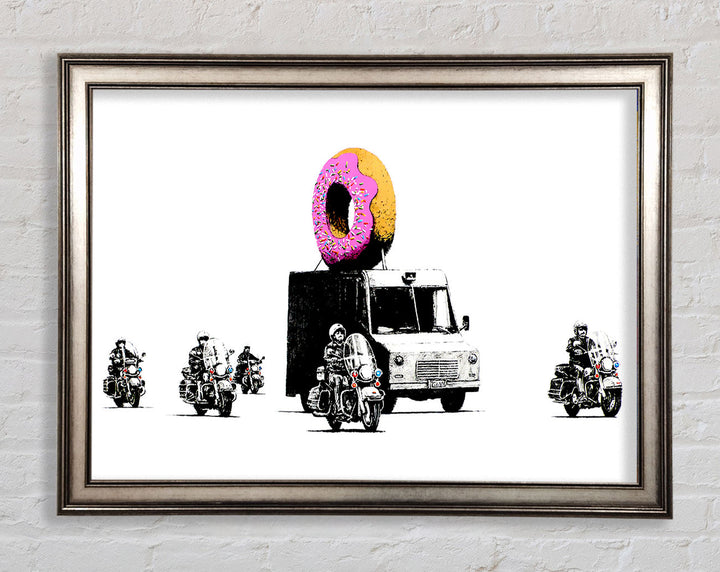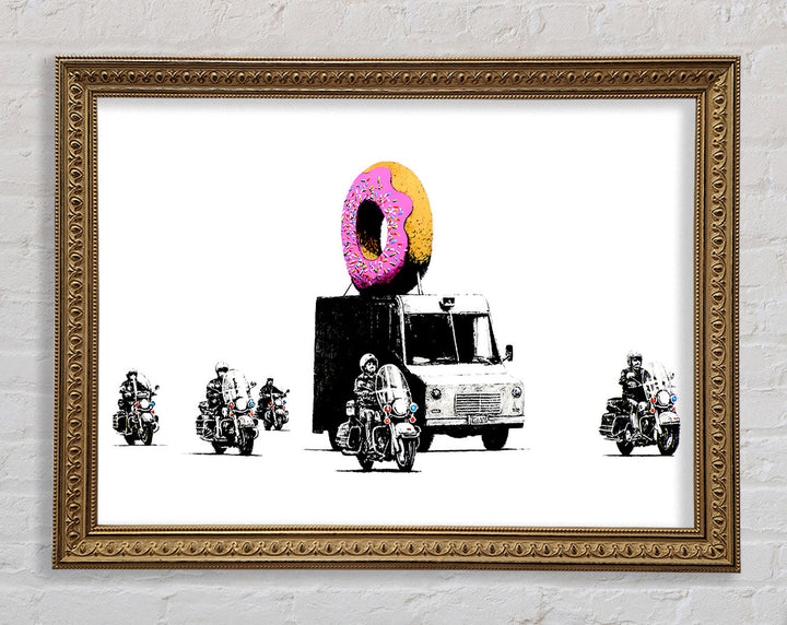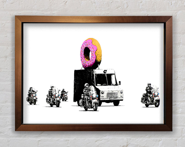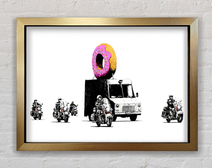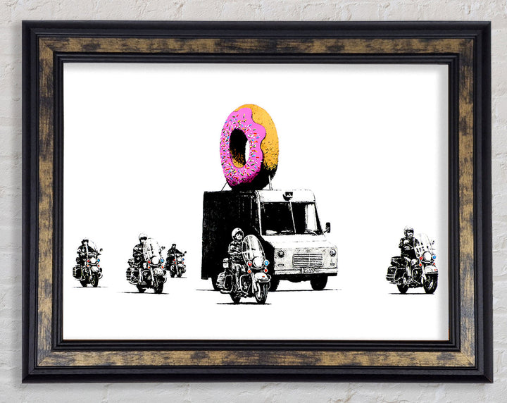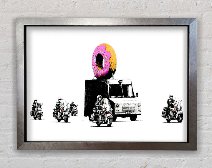Gerahmter Druck „Donut Security“, erhältlich in mehreren Rahmenfarben. Fertig zum Aufhängen aus der Schachtel und handgefertigt im Vereinigten Königreich.