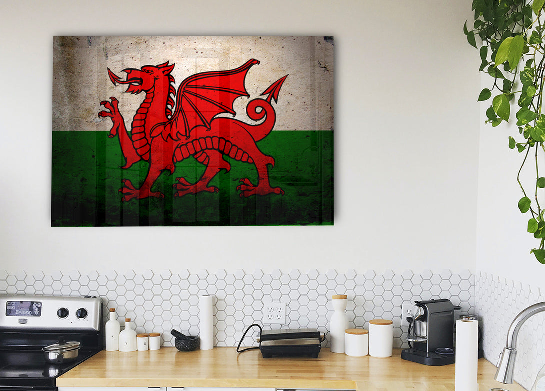 Acryldruck „Dragon Of Wales“, UV-gedruckt auf 5 mm dickes Acrylglas. Wird mit allem geliefert, was Sie zum Aufhängen an die Wand brauchen.