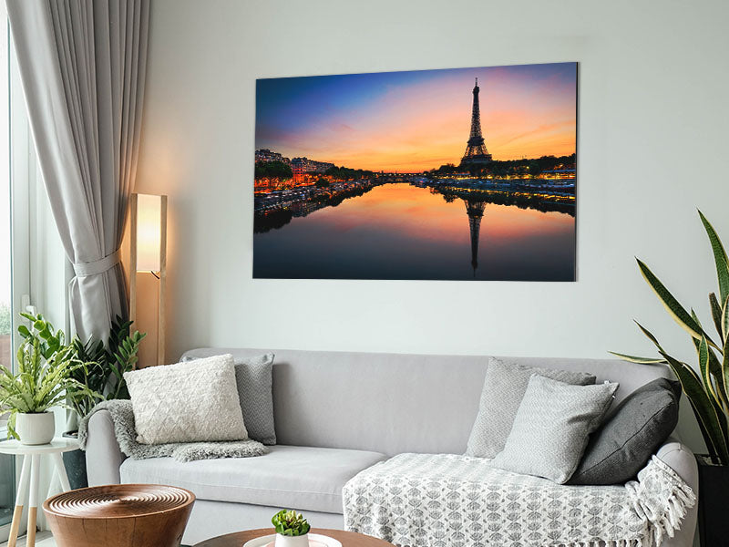 Eiffelturm über der Seine 3 Gedruckt auf gebürstetem Aluminium-Dibond. Eine moderne Art, Kunst zu präsentieren und leicht zu pflegen.