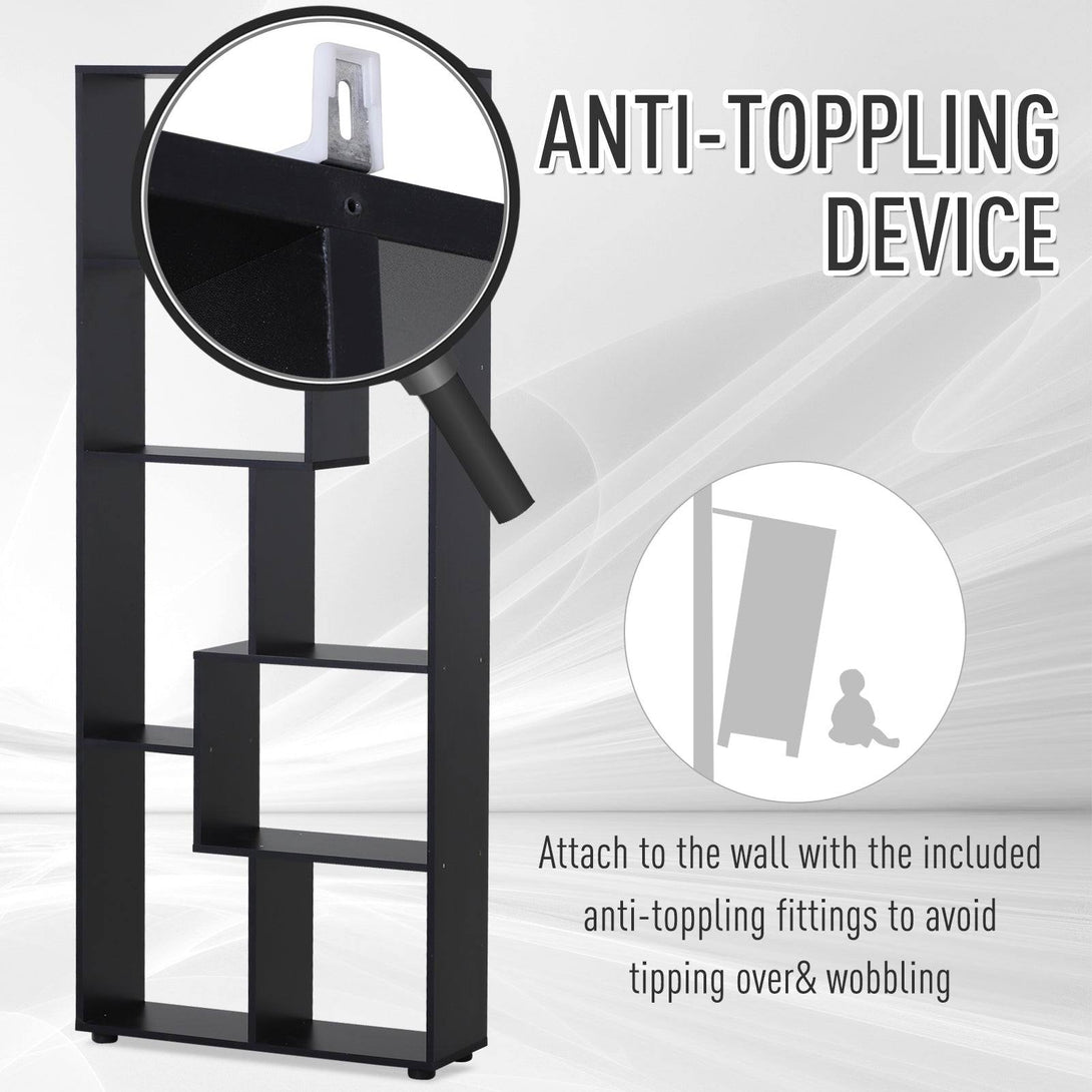 A must for all the book lovers out there let this bookshelf from HOMCOM let you show off your impressive collection with pride. Using thick particle board for a structure which supports up to 80kg, the frame is crafted into a simple design, where eight differently sized and separate compartments are intertwined into each over for a unique look youll love for years to come. On the bottom, foot pads are placed to promote balance and protect your floor, whilst attachments can be found on the back to secure to the wall keeping the unit safely in place around to prevent it tipping over. A minimal design with maximum impact.
