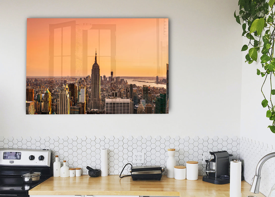 Acryldruck „Perfect City Sunrise“ des Empire State Building, UV-gedruckt auf 5 mm dickes Acrylglas. Wird mit allem geliefert, was Sie zum Aufhängen an die Wand benötigen.