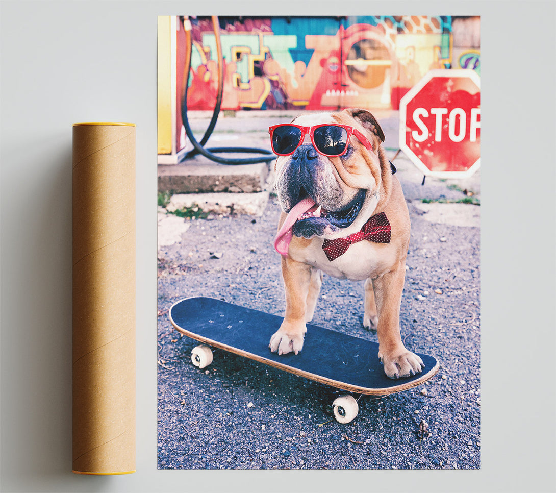 Our English Bulldog Skateboarding Poster is printed 260 GSM premium lustre paper that offers vibrant colours and exceptional detail.