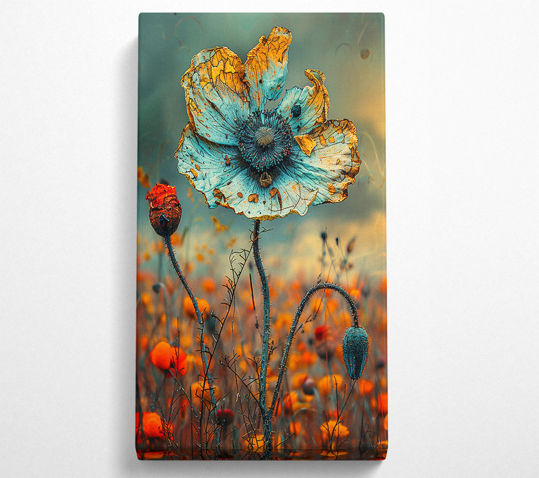 Faded Teal Poppy Field Canvas Art