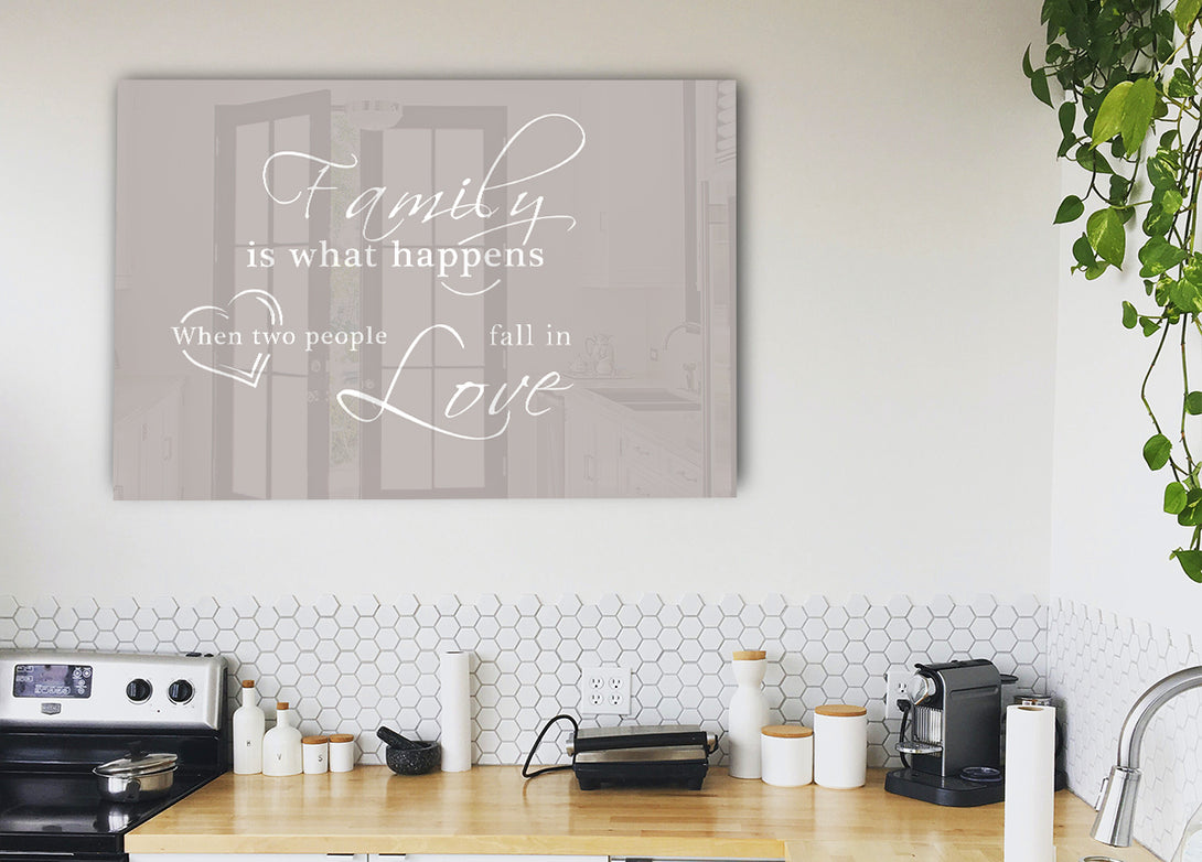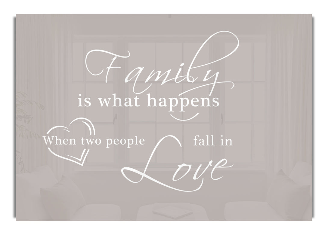 Family Is What Happens Beigefarbener Acryldruck, UV-gedruckt auf 5 mm dickes Acrylglas. Wird mit allem geliefert, was Sie zum Aufhängen an Ihre Wand benötigen.