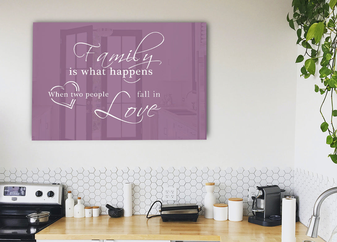 Family Is What Happens Dusty Pink Acryldruck, UV-gedruckt auf 5 mm dickes Acrylglas. Wird mit allem geliefert, was Sie zum Aufhängen an die Wand brauchen.