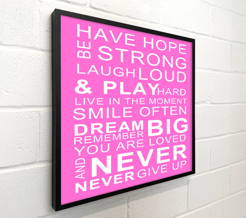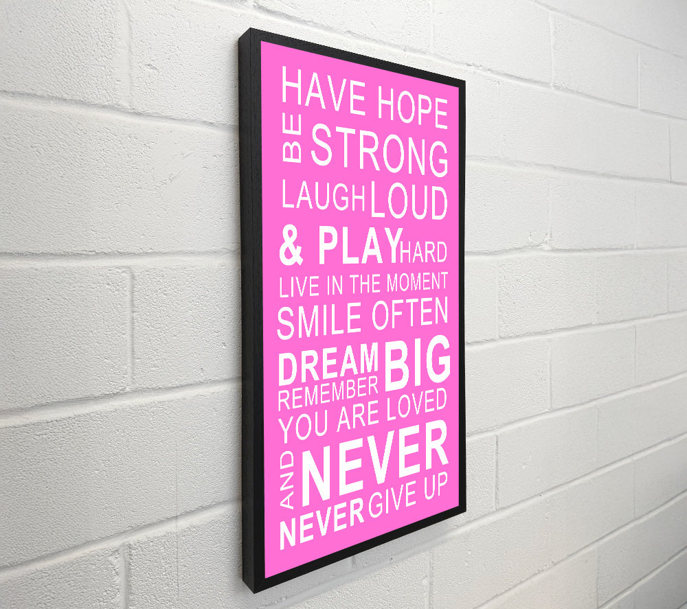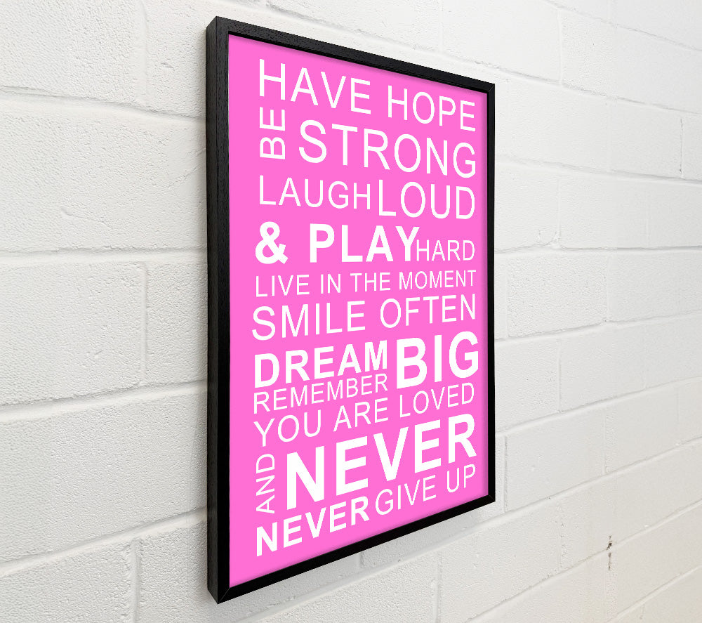 Family Quote Have Hope Be Strong Laugh Loud Vivid Pink