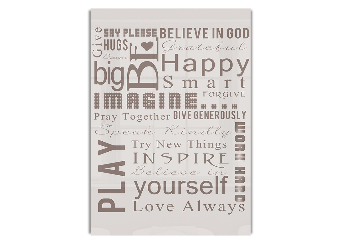 Familienregeln: Be Happy Love Always, beigefarbener Acryldruck, UV-gedruckt auf 5 mm dickes Acrylglas. Wird mit allem geliefert, was Sie zum Aufhängen an die Wand brauchen.
