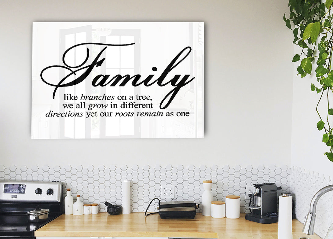 Acryldruck „Familie, wir wachsen alle in unterschiedliche Richtungen“, UV-gedruckt auf 5 mm dickes Acrylglas. Wird mit allem geliefert, was Sie zum Aufhängen an die Wand brauchen.