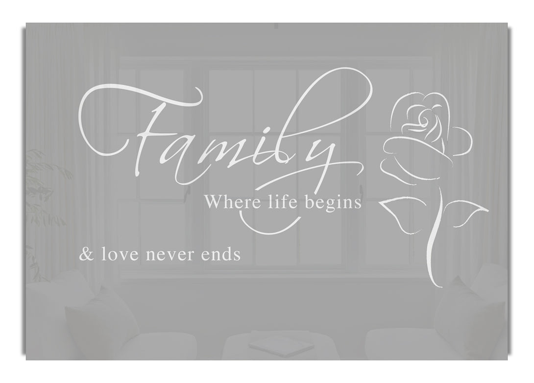 Familie, wo das Leben beginnt 1 Grauweißer Acryldruck, UV-gedruckt auf 5 mm dickes Acrylglas. Wird mit allem geliefert, was Sie zum Aufhängen an die Wand brauchen.