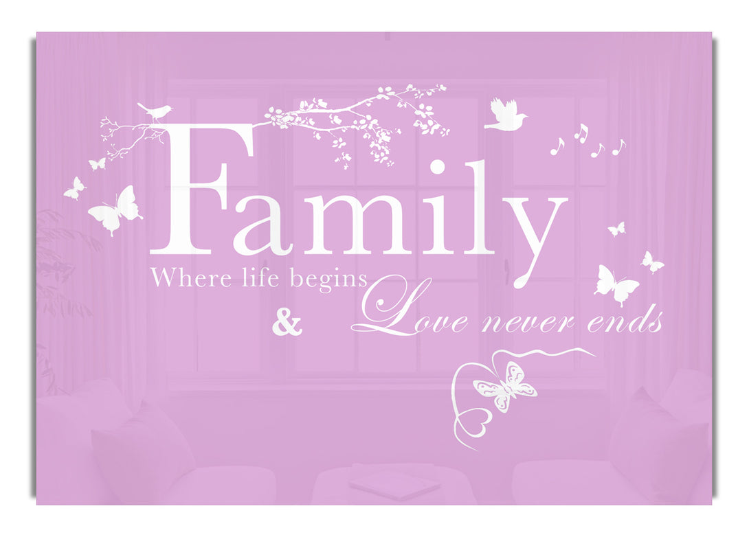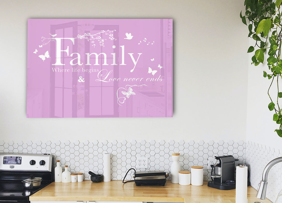 Familie, wo das Leben beginnt. Rosa Acryldruck, UV-gedruckt auf 5 mm dickes Acrylglas. Wird mit allem geliefert, was Sie zum Aufhängen an die Wand brauchen.