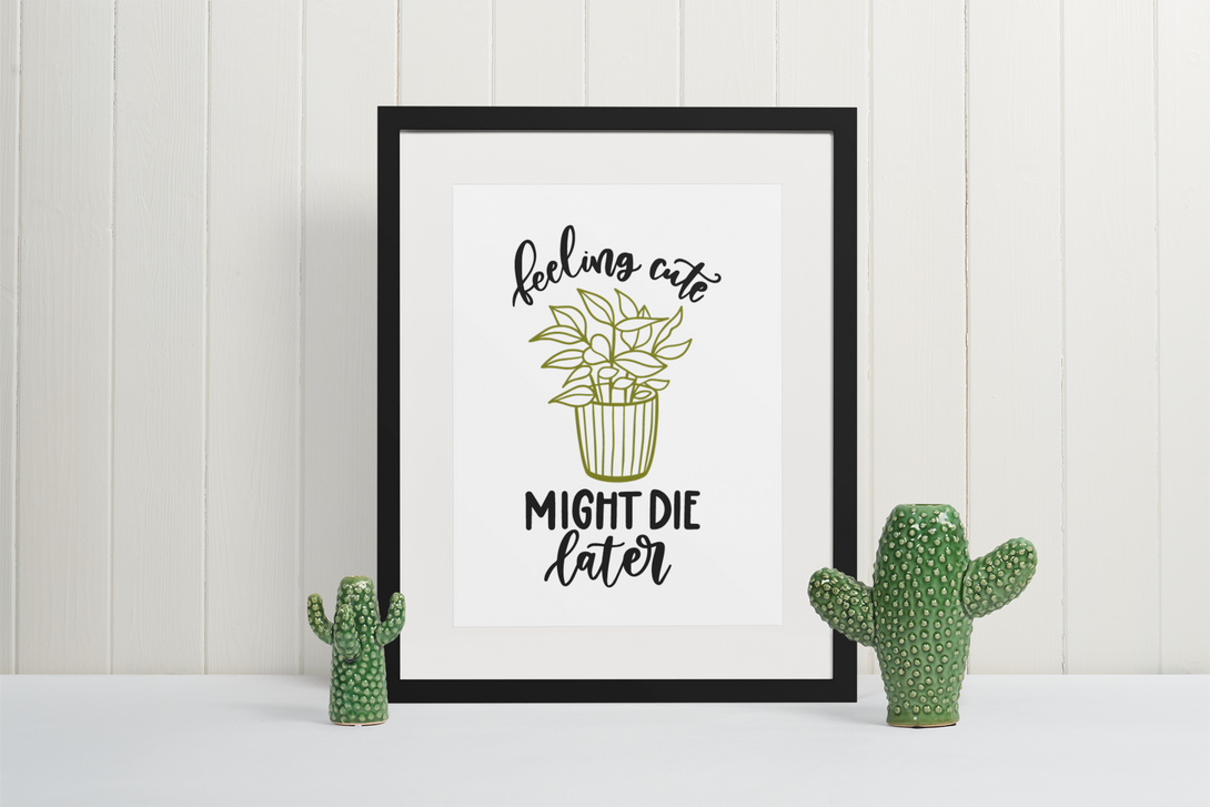 Feeling Cute Might Die Later Plant Obsessed Humorous Home Wall Decor Print