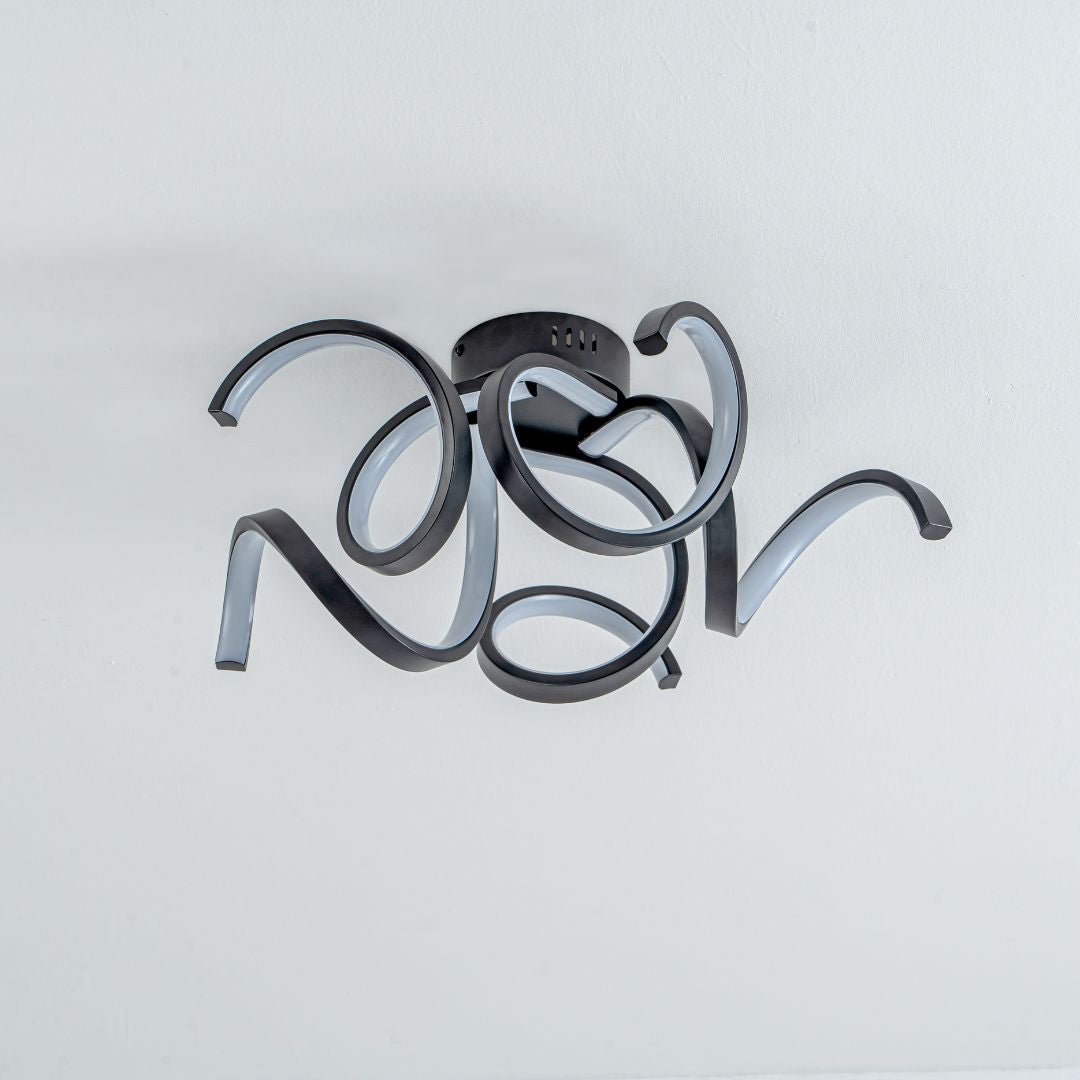 Add a sculptural touch of modern elegance to your home with the Fiona 5 Light Black LED Semi Flush Ceiling Light, exclusive to Pagazzi Lighting. This eye-catching fixture features five gracefully curved LED arms that twist and flow in a captivating design, finished in a modern matte black for a minimalist, contemporary look. Compact yet striking, the semi-flush style makes it ideal for rooms with lower ceilings, while the reflective surfaces amplify its soft glow to create a warm and welcoming ambiance.