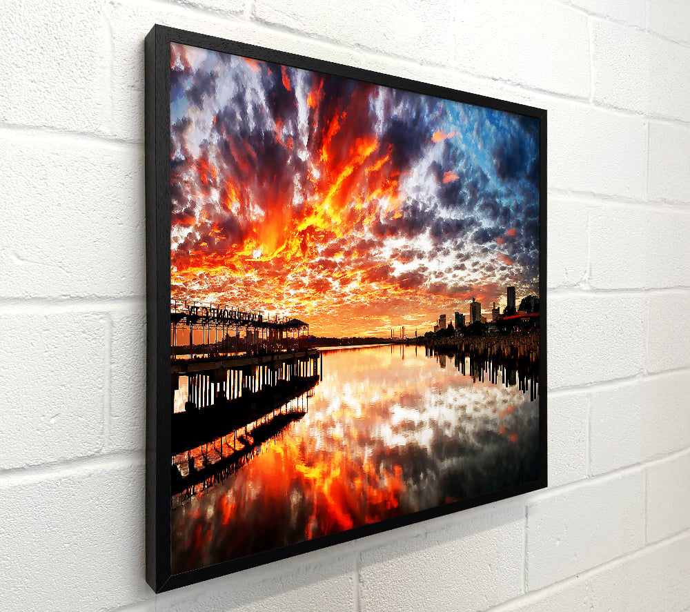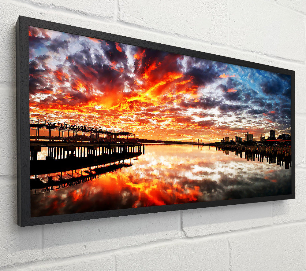 Fire Sky Ocean Reflection