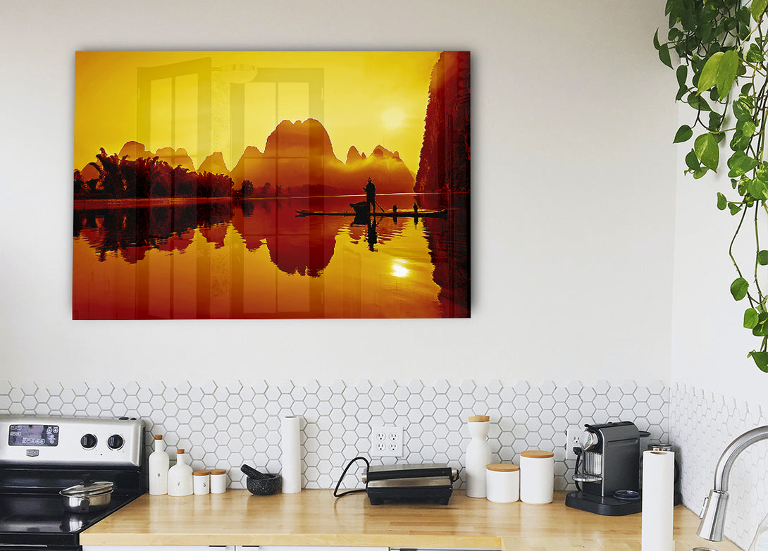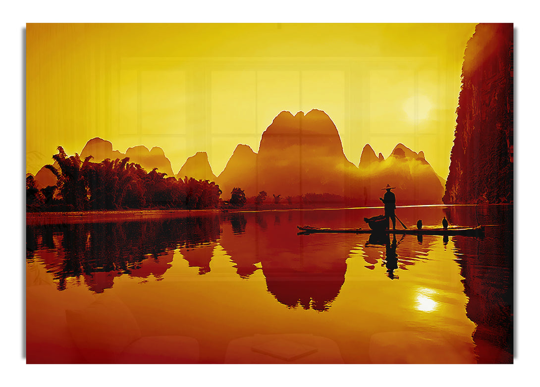Fisherman Reflection Caramel-Acryldruck, UV-gedruckt auf 5 mm dickes Acrylglas. Wird mit allem geliefert, was Sie zum Aufhängen an Ihre Wand benötigen.