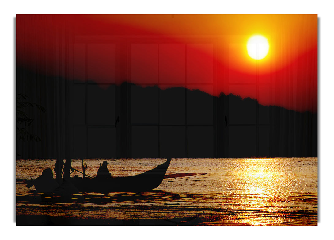Acryldruck „Fishing Under The Ocean Sun“, UV-gedruckt auf 5 mm dickes Acrylglas. Wird mit allem geliefert, was Sie zum Aufhängen an die Wand brauchen.