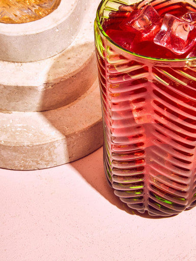 These highball glasses have a captivating green hue that brings a touch of sophistication to any dining table. The embossed patterns not only add to the look but also improve the grip.