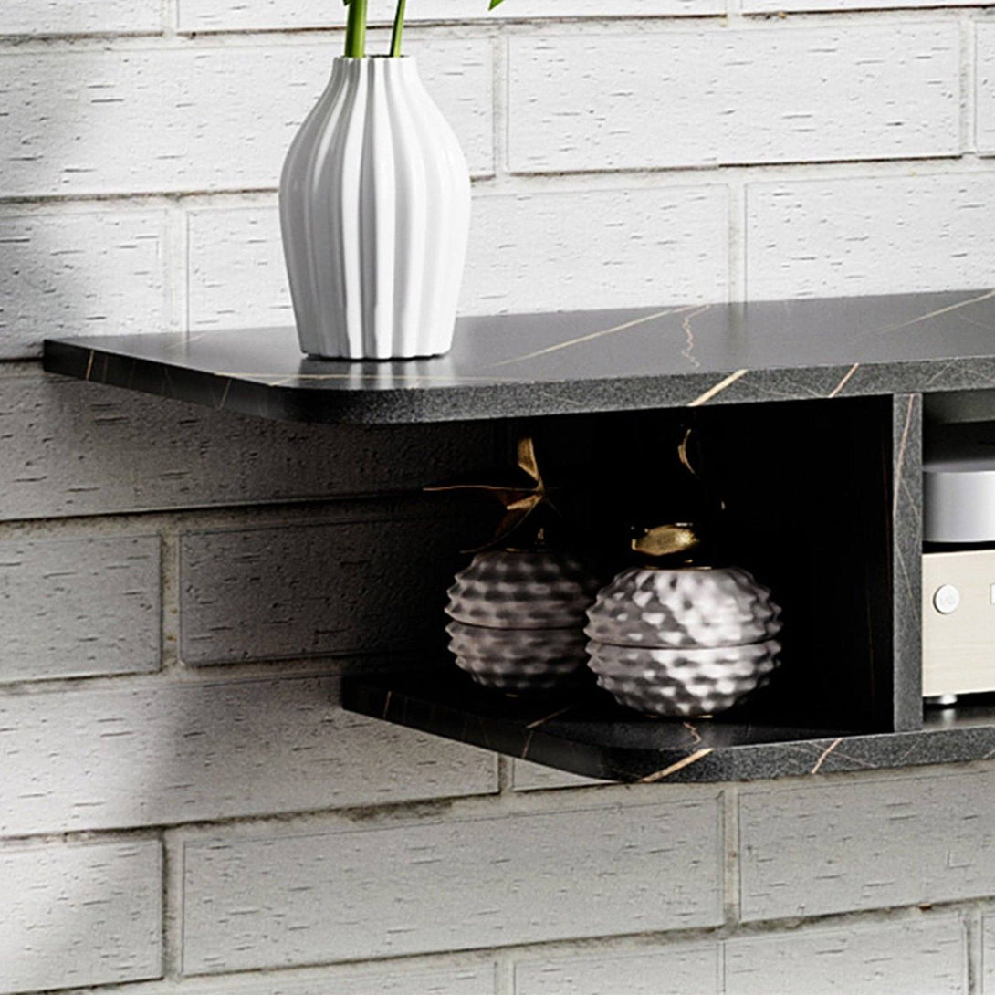 Make your space modern with this floating TV shelf, from HOMCOM. The wall-mounted design means no floor space is taken, with cable holes on the back to keep wires together and mess-free. Made from particle board, this unit is durable, with a protective melamine coating. It has a spacious middle shelf for storage; the smaller side shelves and table top offer extra display room.