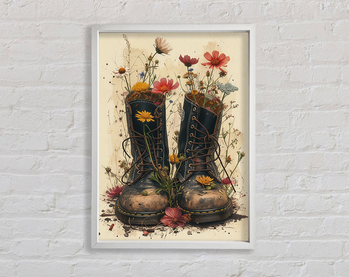 Brighten up your space with the Flower Boots Framed Print, a cheerful piece of framed art that adds a touch of whimsy to any room. This delightful print features a vibrant design of blooming flowers sprouting from a pair of charming boots. Available in six sizes, from small to oversized, it fits perfectly in any setting, whether it's a cozy corner or a spacious living room. Choose from a variety of colors to match your decor. Each piece is handmade in the United Kingdom, ensuring high-quality craftsmanship. Ready to hang, this framed print offers an easy and stylish way to refresh your home.