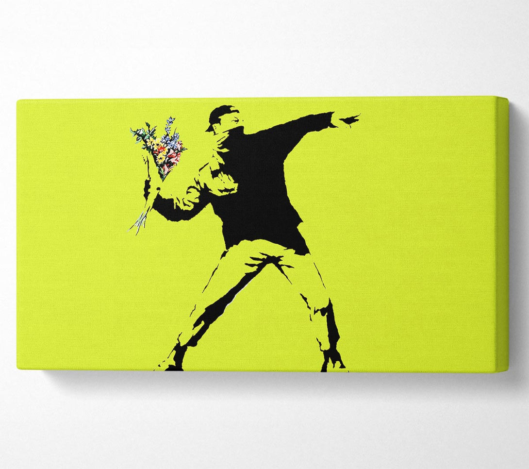 Flower Thrower, hellgrüne Leinwand, gedruckt auf beschichteter Polyester-Leinwand. Auf einem 44 mm großen Kastenrahmen montiert, fertig zum Aufhängen.