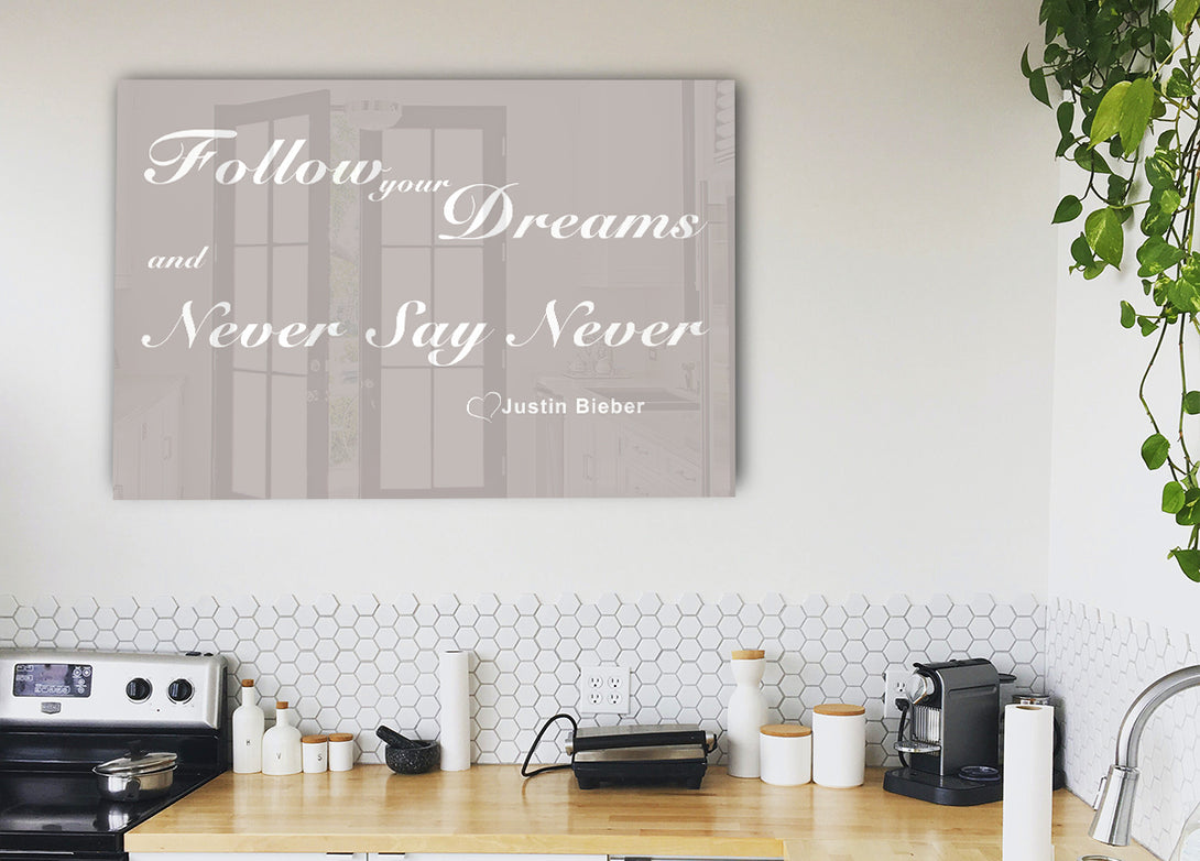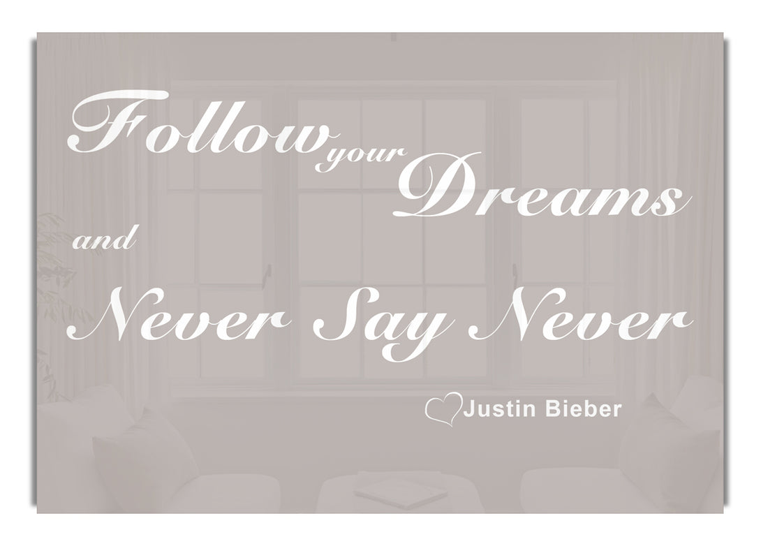 Follow Your Dreams Justin Bieber Beige Acryldruck, UV-gedruckt auf 5 mm dickes Acrylglas. Wird mit allem geliefert, was Sie zum Aufhängen an Ihre Wand brauchen.