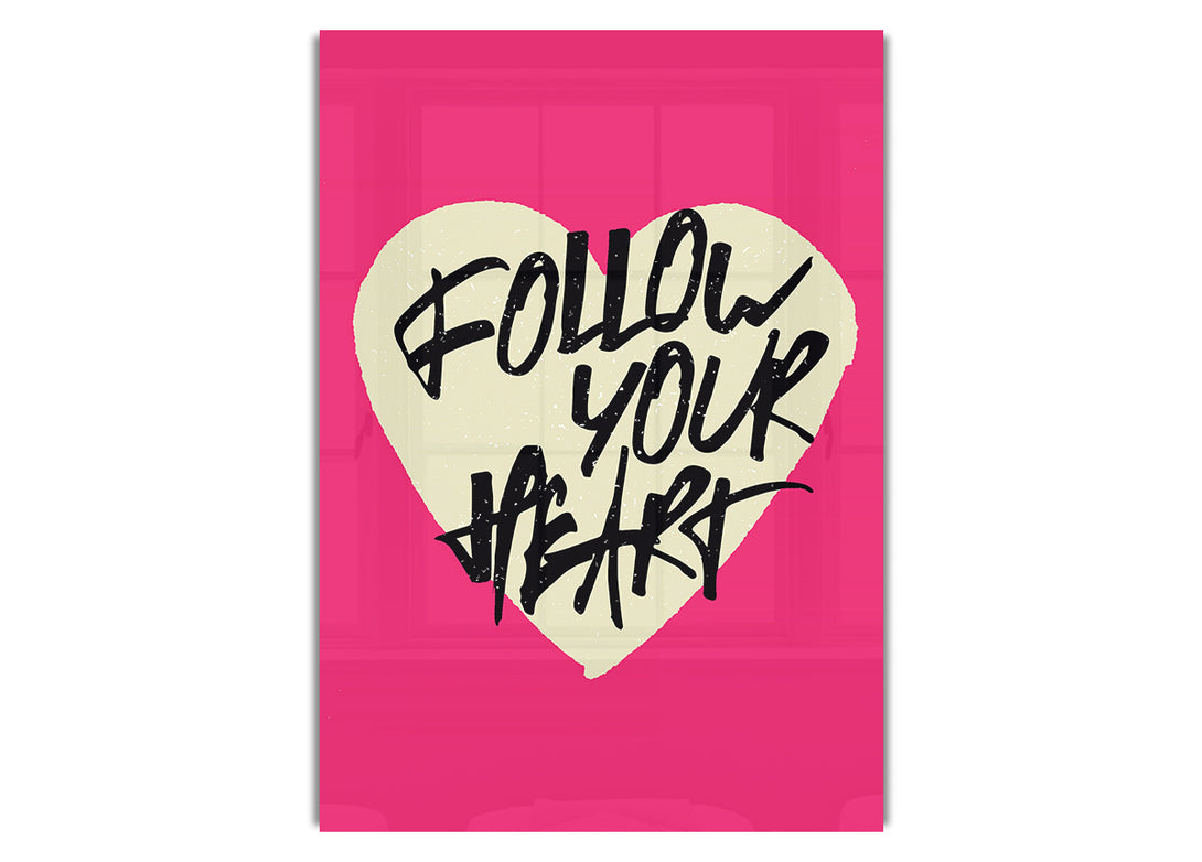 Acryldruck „Follow Your Heart 1“, UV-gedruckt auf 5 mm dickes Acrylglas. Wird mit allem geliefert, was Sie zum Aufhängen an die Wand brauchen.