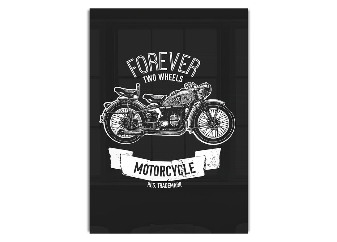 Acryldruck „Forever Two Wheels“, UV-Druck auf 5 mm dickes Acrylglas. Wird mit allem geliefert, was Sie zum Aufhängen an die Wand brauchen.