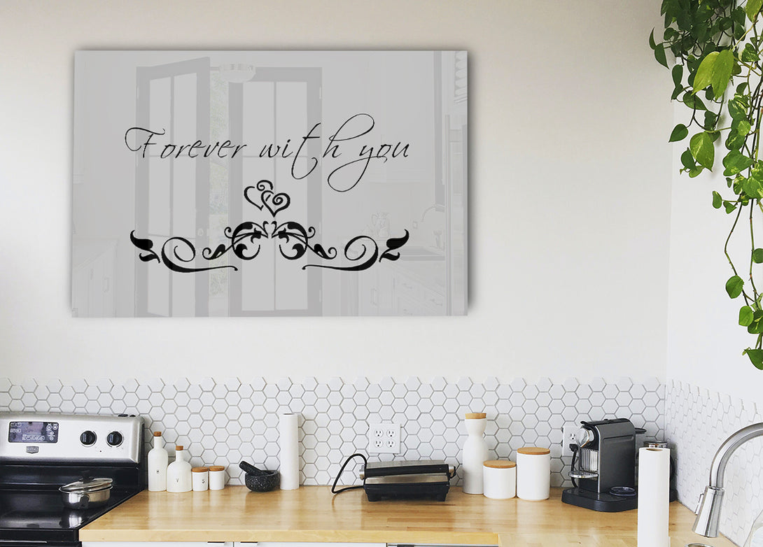 Grauer Acryldruck „Forever With You“, UV-gedruckt auf 5 mm dickes Acrylglas. Wird mit allem geliefert, was Sie zum Aufhängen an die Wand brauchen.