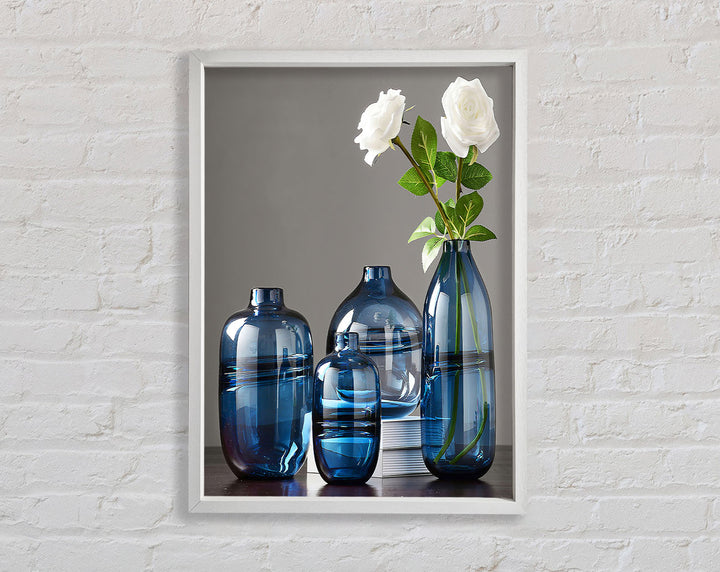 Introducing the Four Blue Vases Framed Print, a stunning piece of framed art that brings elegance and style to any room. This beautiful print showcases intricate details and vibrant colors, making it a perfect addition to your home or office decor. Available in six sizes, from small to oversized, this artwork can fit seamlessly into any space, no matter the dimensions.