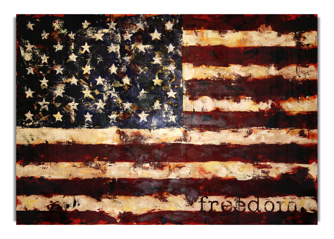 Acryldruck „Freedom Flag USA“, UV-Druck auf 5 mm dickes Acrylglas. Wird mit allem geliefert, was Sie zum Aufhängen an die Wand brauchen.