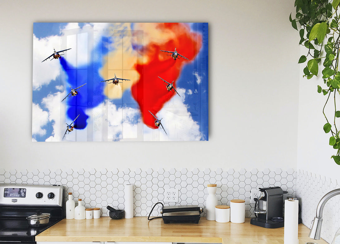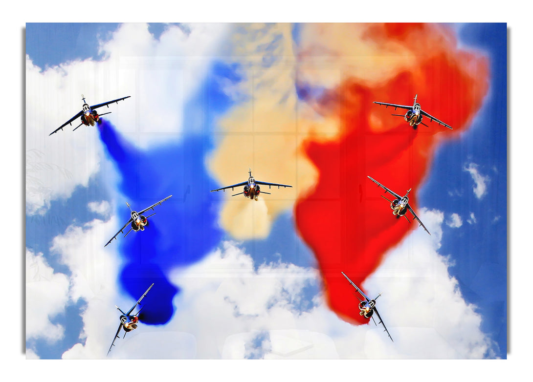 Acryldruck „French Airshow Colours“, UV-gedruckt auf 5 mm dickes Acrylglas. Wird mit allem geliefert, was Sie zum Aufhängen an die Wand brauchen.